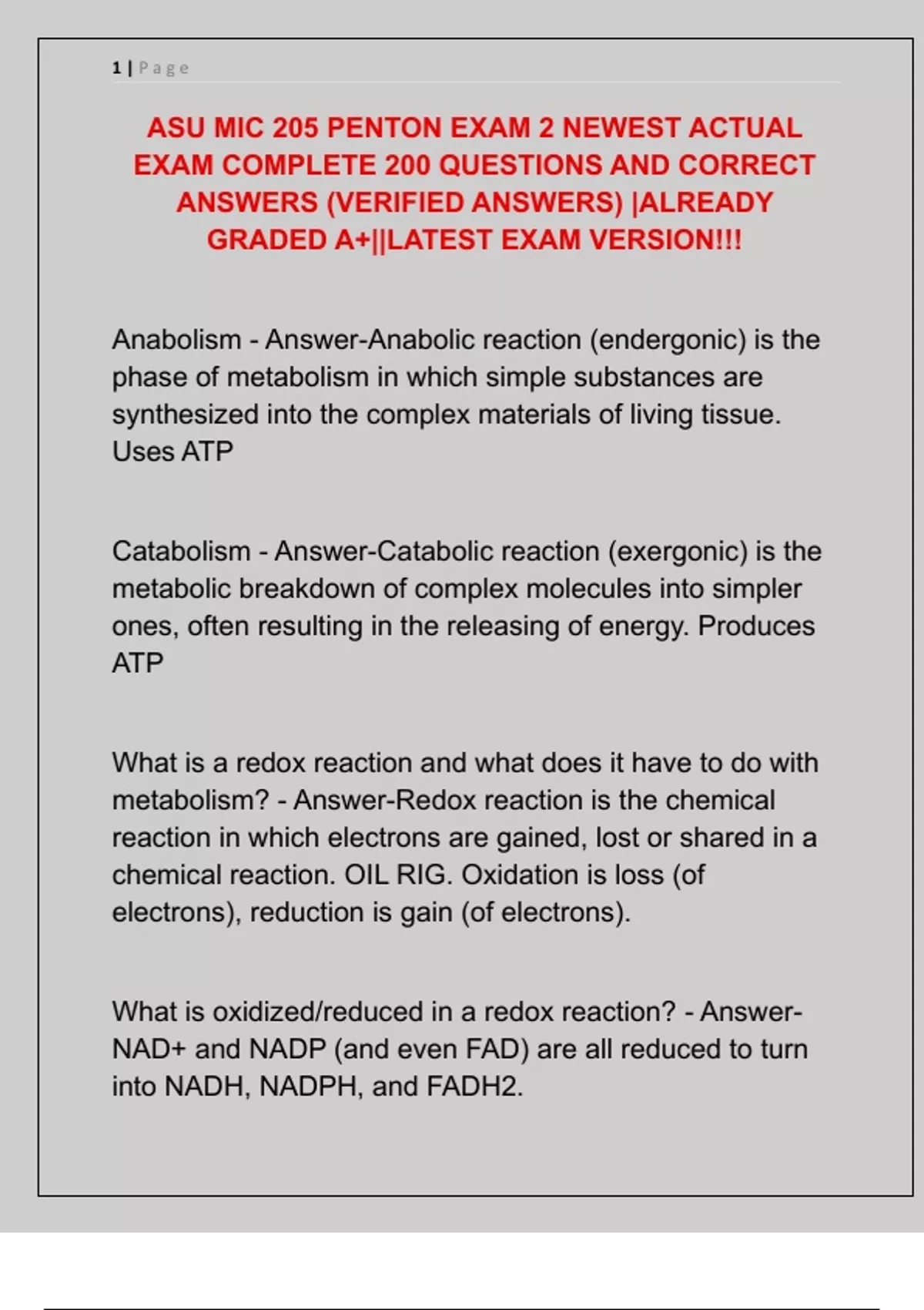 ASU MIC 205 PENTON EXAM 2 NEWEST ACTUAL