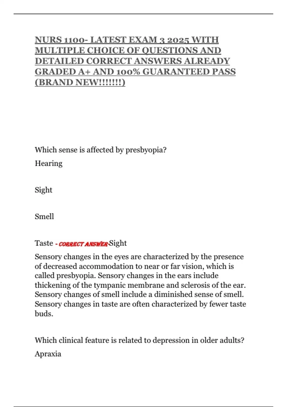 Presbycusis - CORRECT ANSWER-Prebycusis