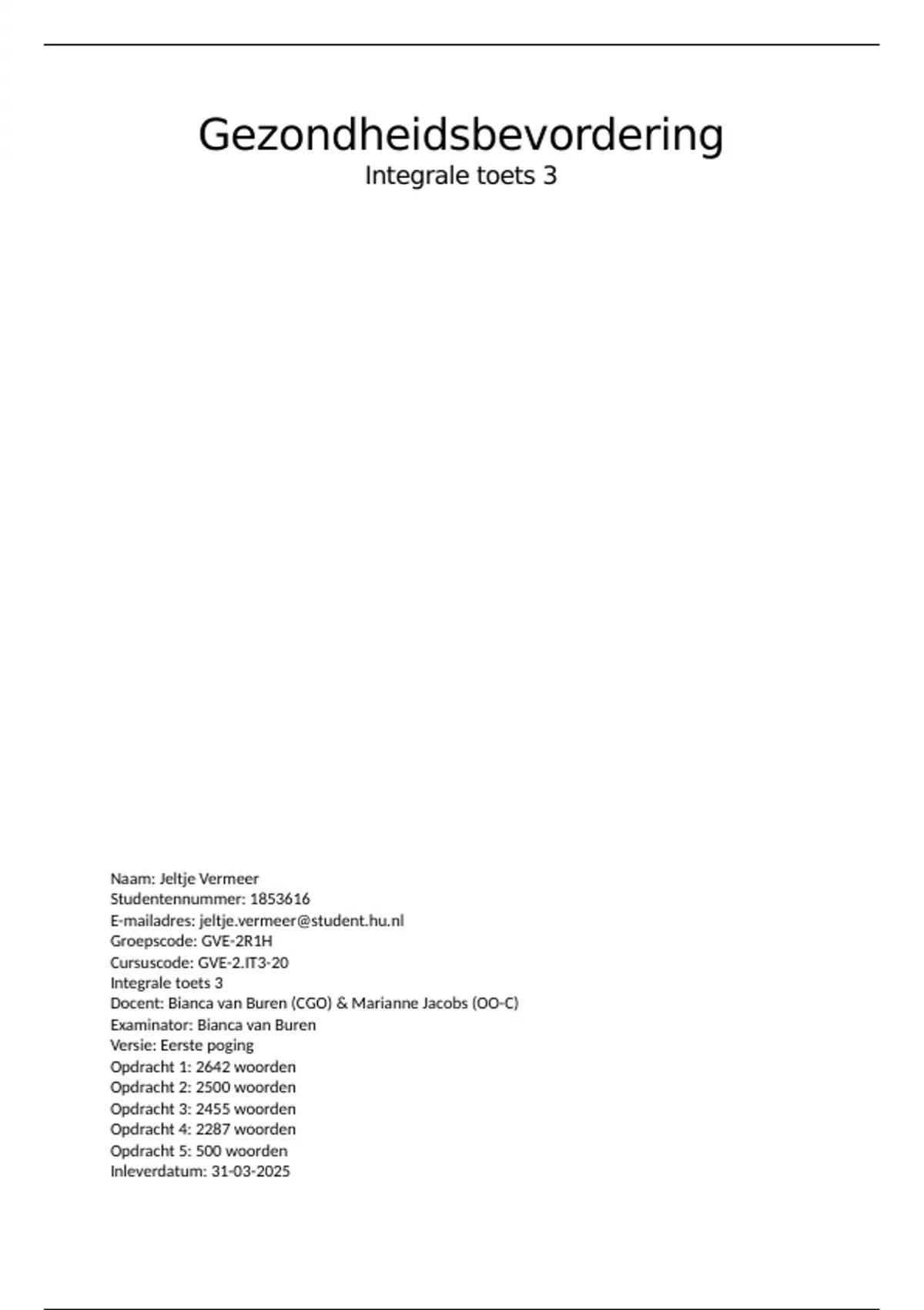 Gezondheidsbevordering (IT3). Hogeschool Utrecht. Verpleegkunde. Cijfer 9,0