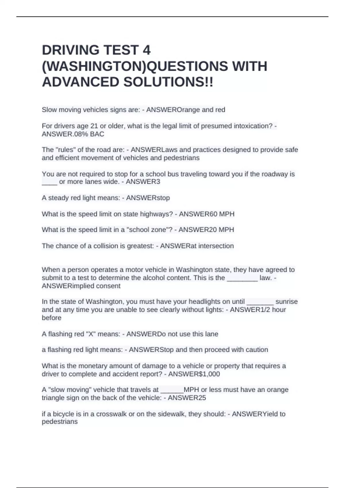 (WASHINGTON)QUESTIONS WITH