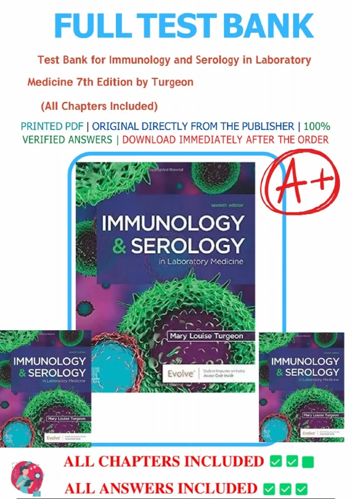 TEST BANK FOR Immunology and Serology in Laboratory Medicine 7th Edition by Turgeon Chapter 1-27. COMPLETE TEST GUIDE