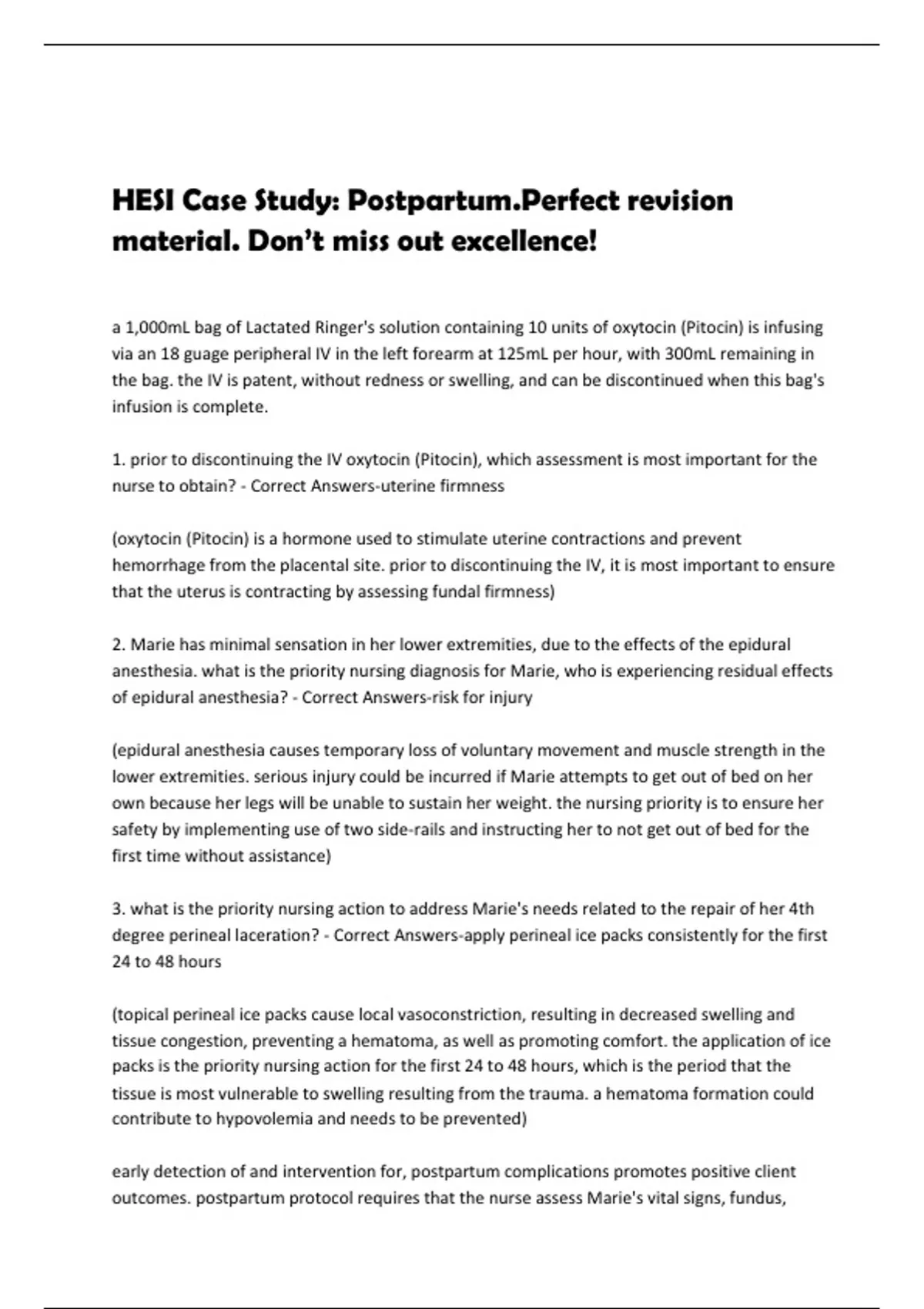 HESI Case Study: Postpartum.Perfect revision