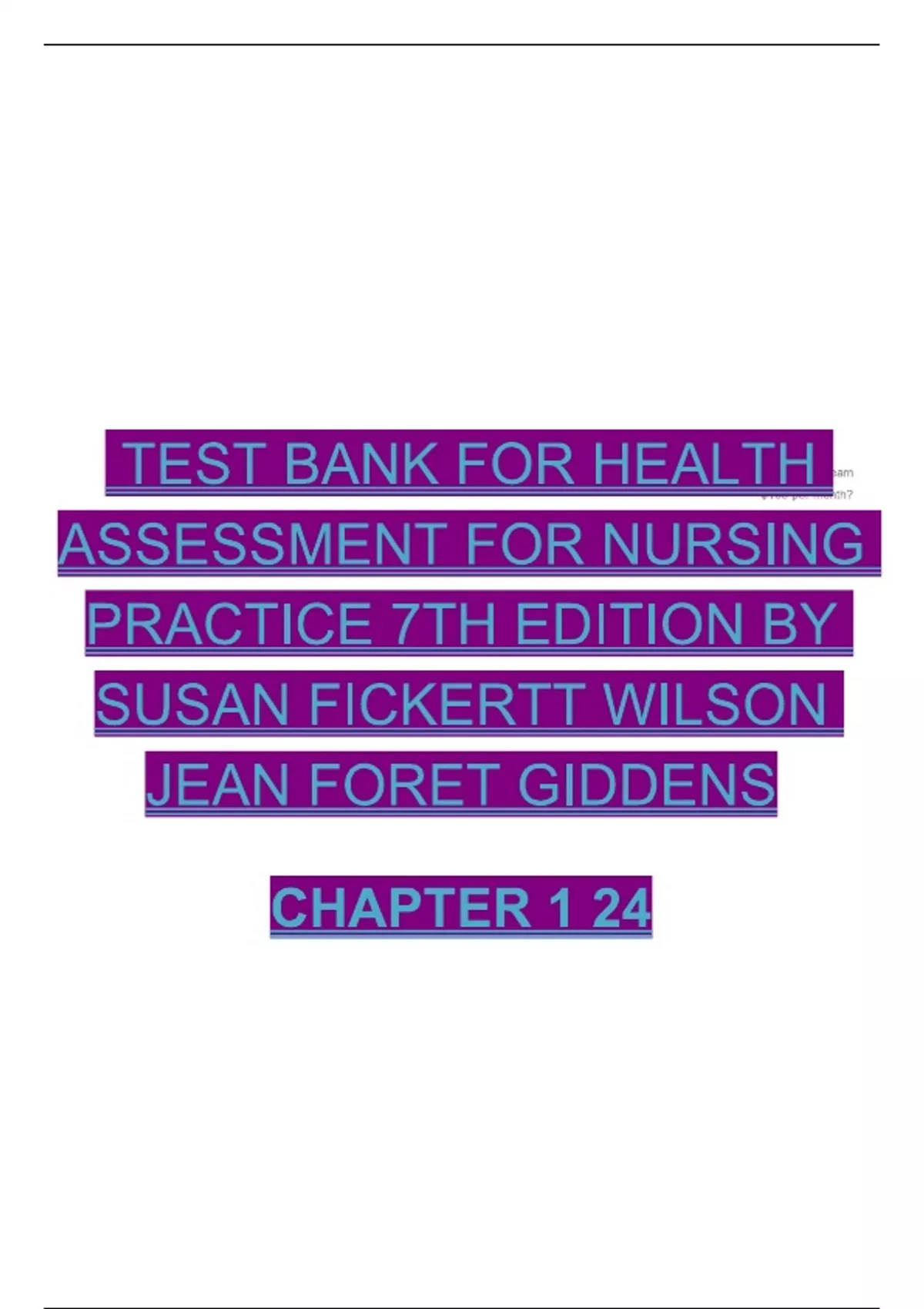 Test Bank For Health Assessment for Nursing Practice 7th Edition by Susan Fickertt Wilson, Jean Foret Giddens Chapter 1-24
