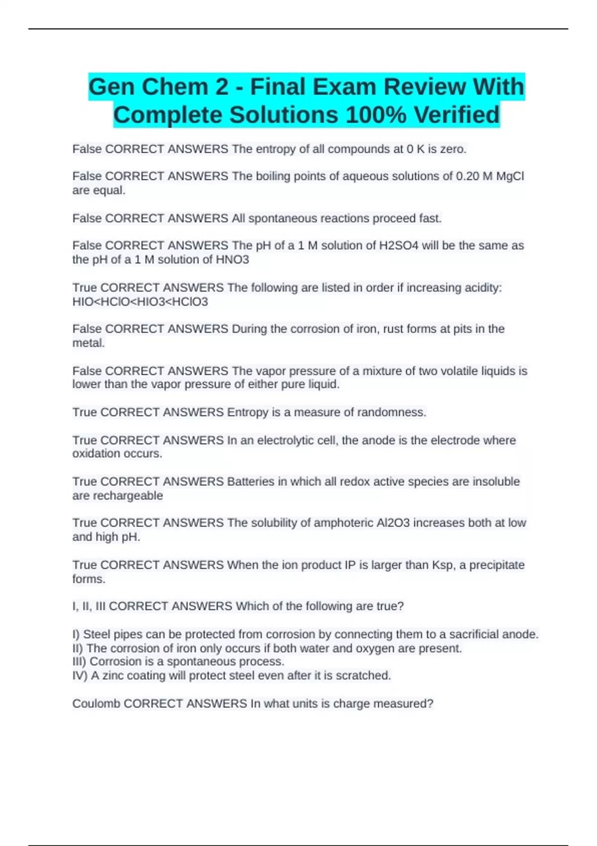 I, II, III CORRECT ANSWERS Which of the following are true?