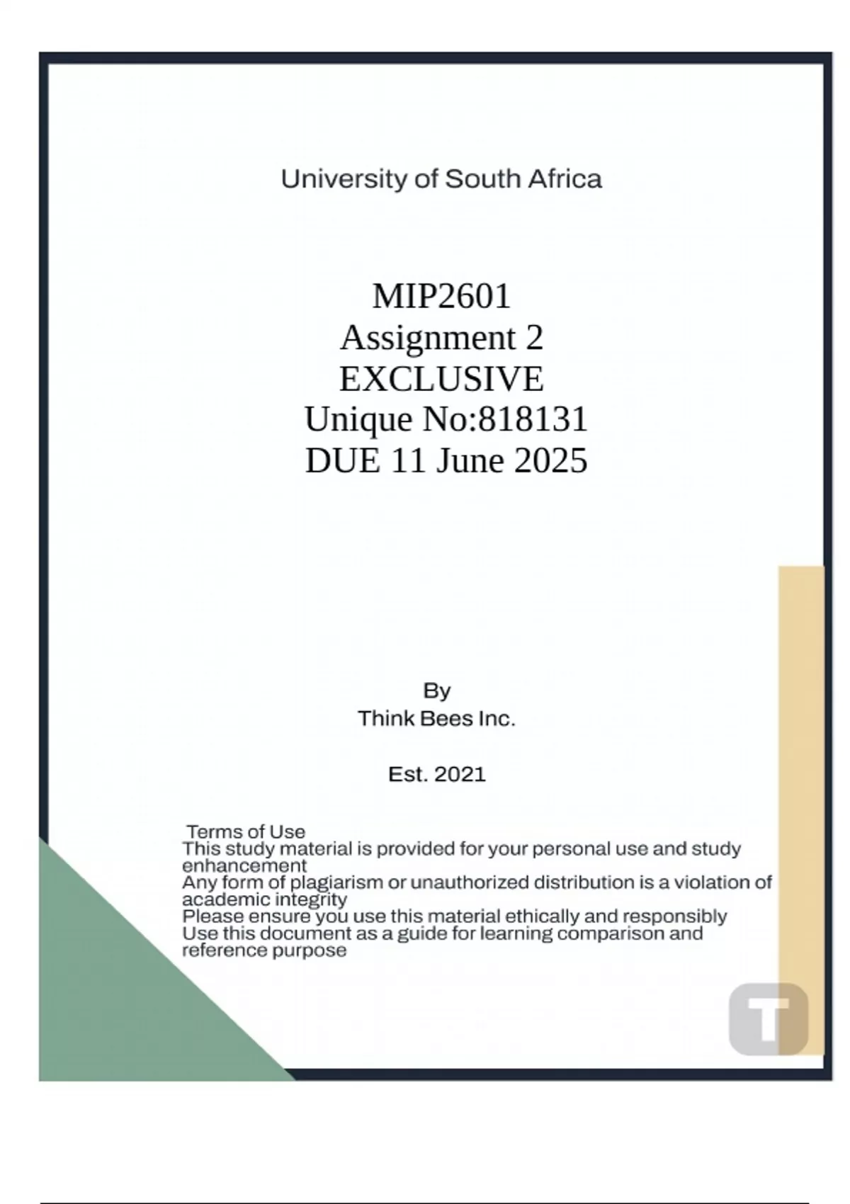 MIP2601 Assignment 2 EXCLUSIVE (818131) DUE 11 June 2025