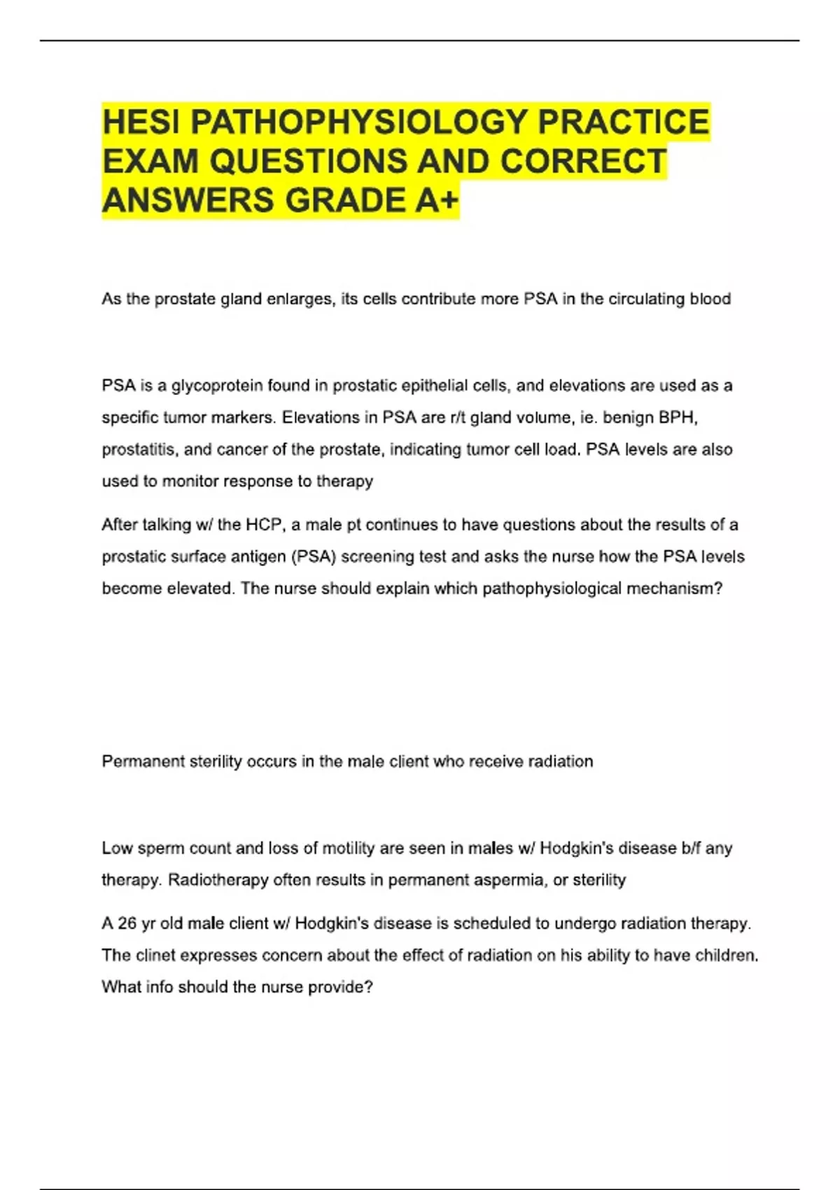 2025 (COMPLETE CORRECT ANSWERS) HESI PATHOPHYSIOLOGY PRACTICE EXAM