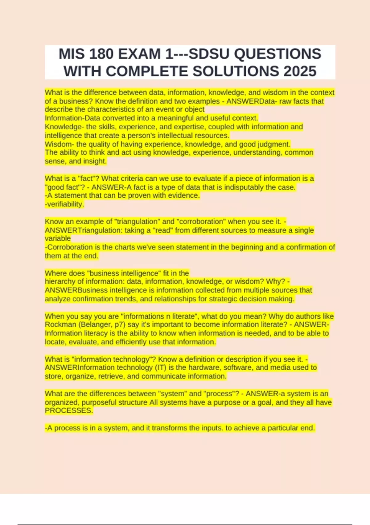ANSWERBusiness intelligence is information collected from multiple sources that
