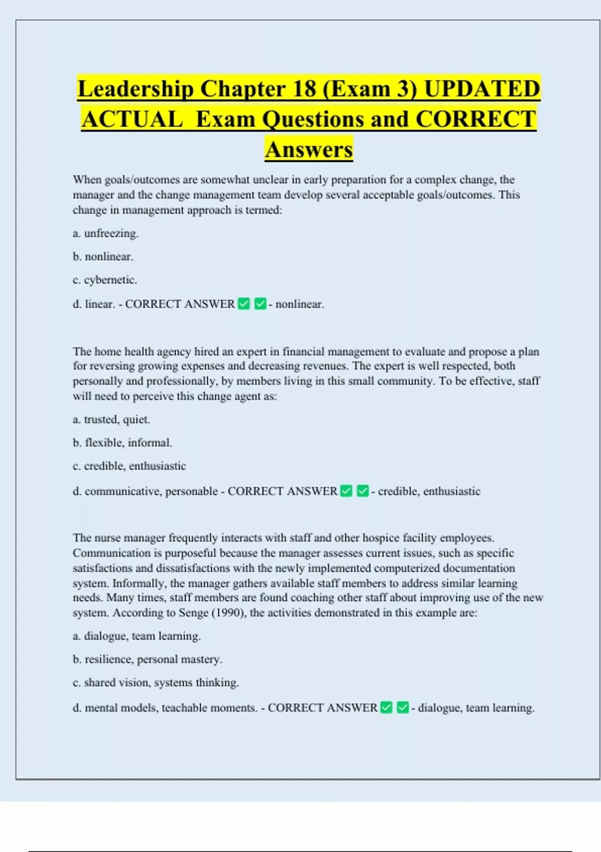 ACTUAL Exam Questions and CORRECT