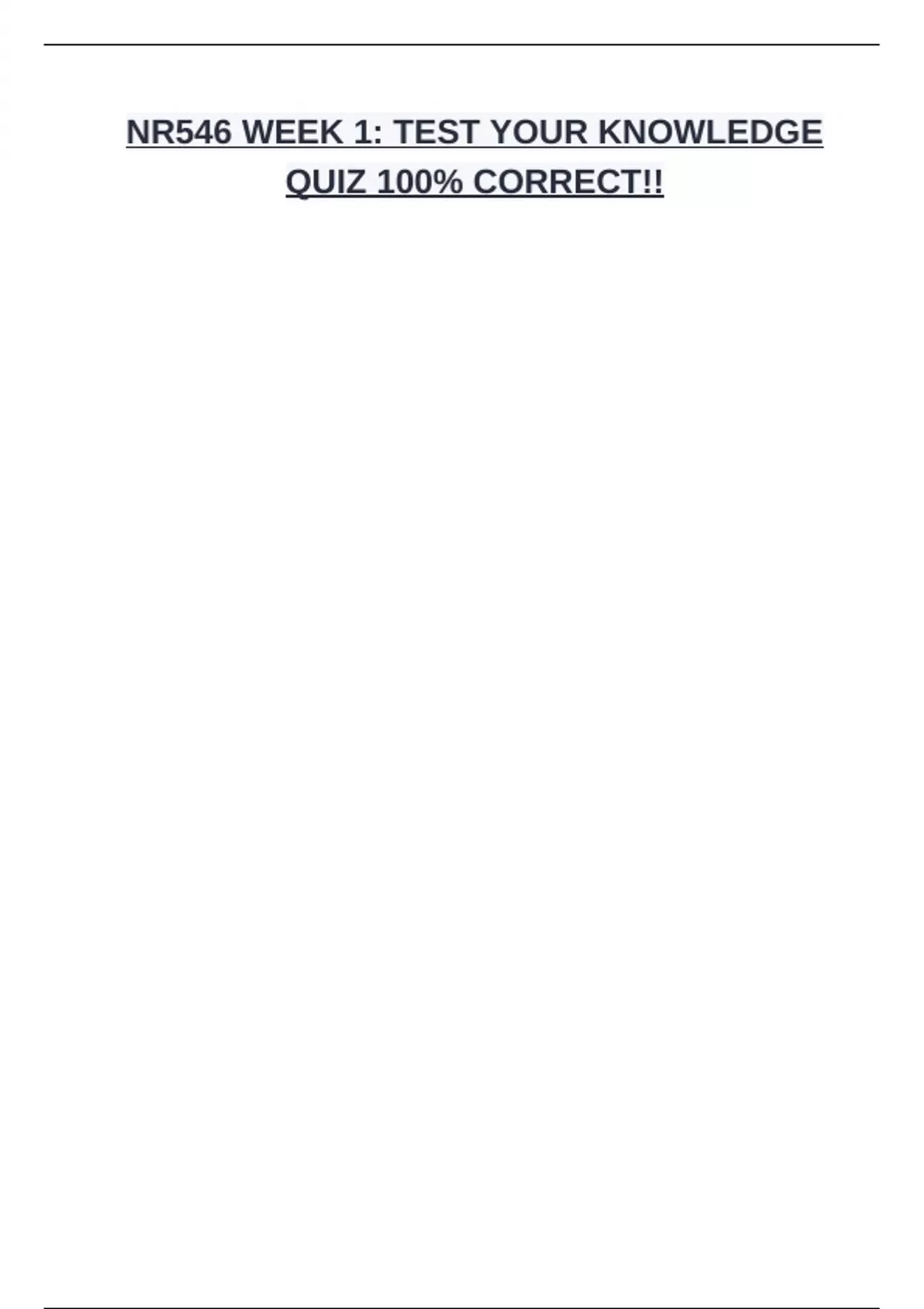 NR546 WEEK 1: TEST YOUR KNOWLEDGE QUIZ 100% CORRECT!!