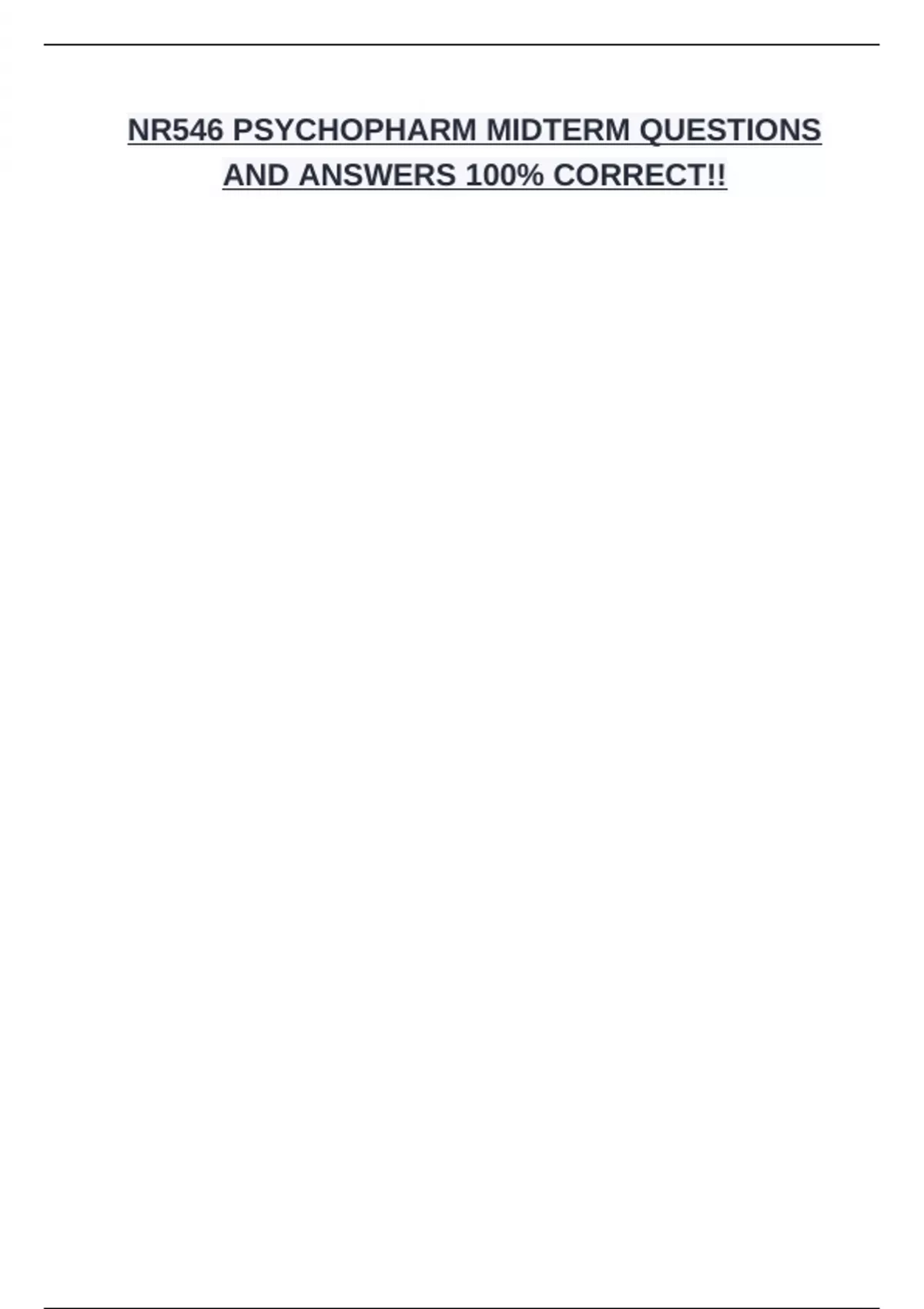 NR546 PSYCHOPHARM MIDTERM QUESTIONS AND ANSWERS 100% CORRECT!!