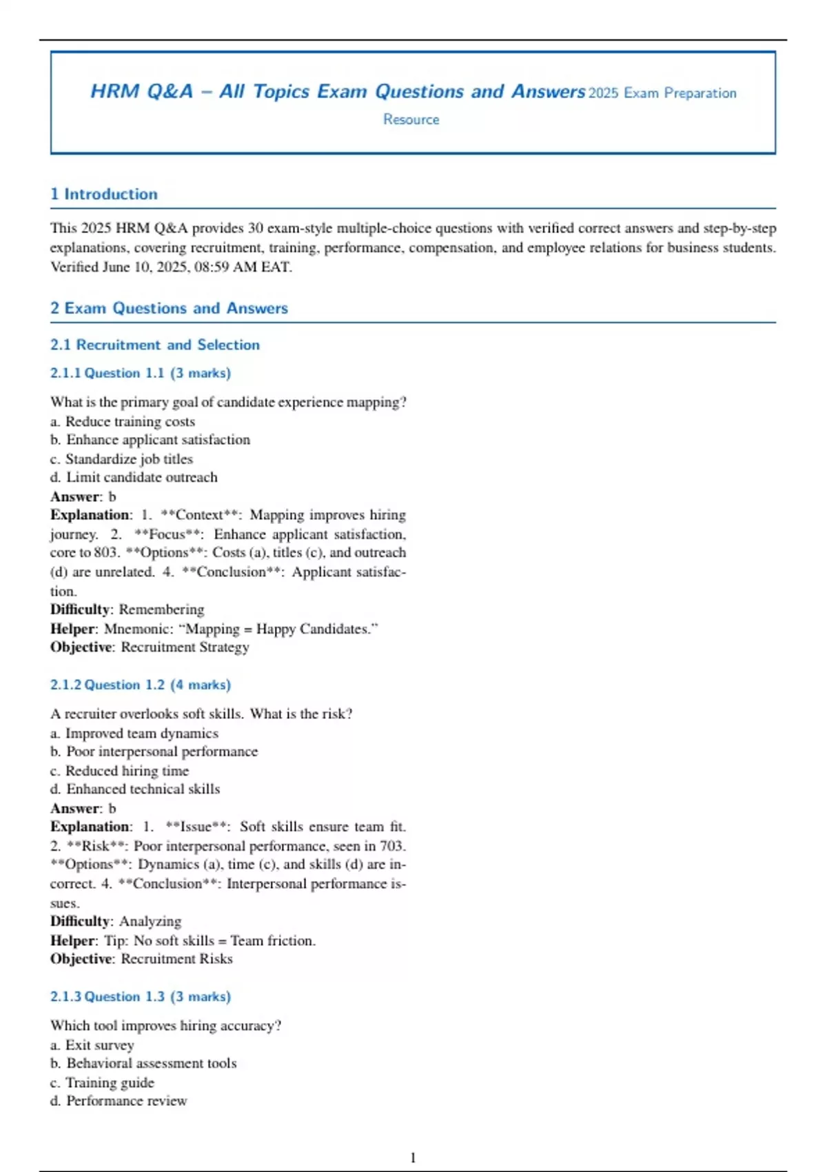 This 2025 HRM Q&A provides 30 exam-style multiple-choice questions with verified correct answers and step-by-step