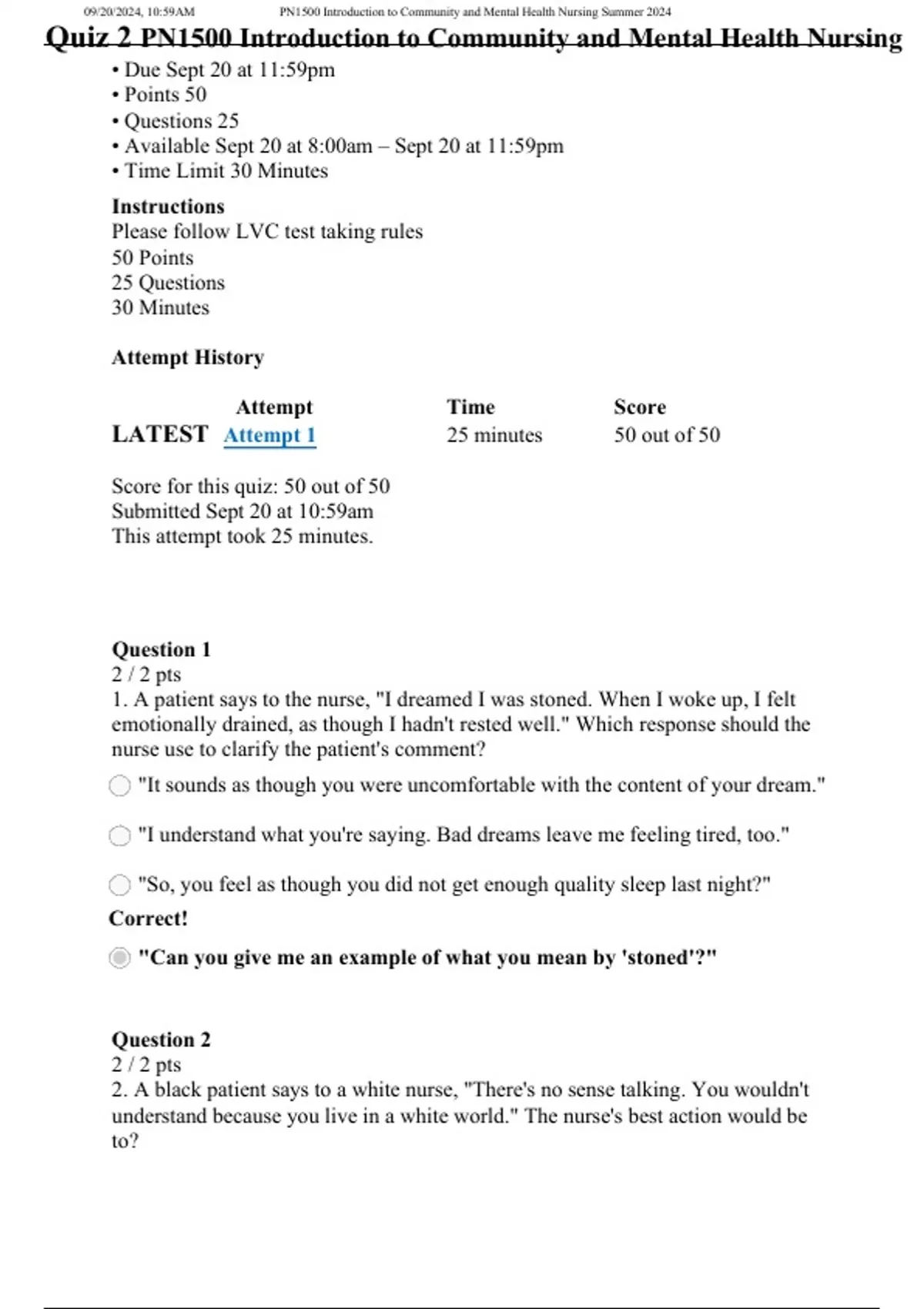 , 09/20/2024, 10:59AM PN1500 Introduction to Community and Mental Health Nursing Summer 2024