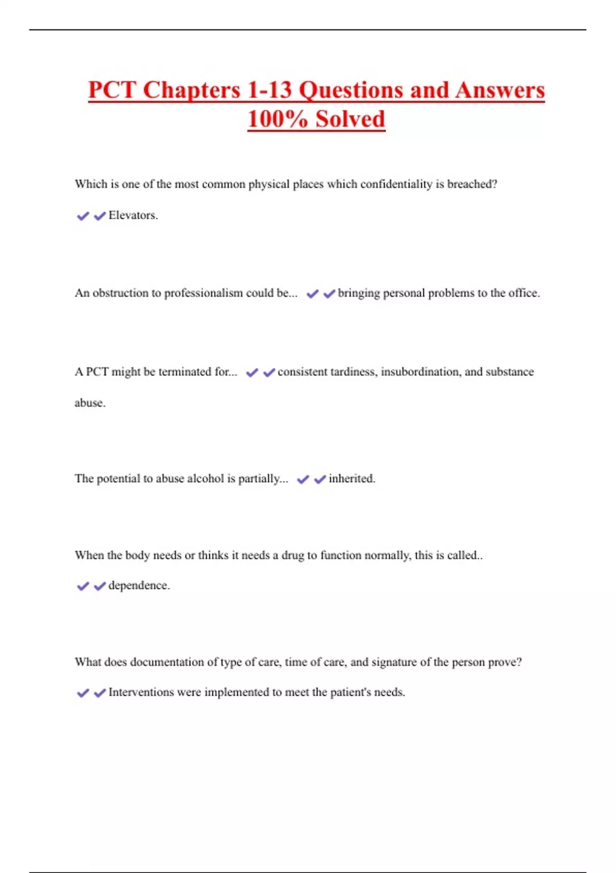 PCT Chapters 1-13 Questions and Answers 100% Solved