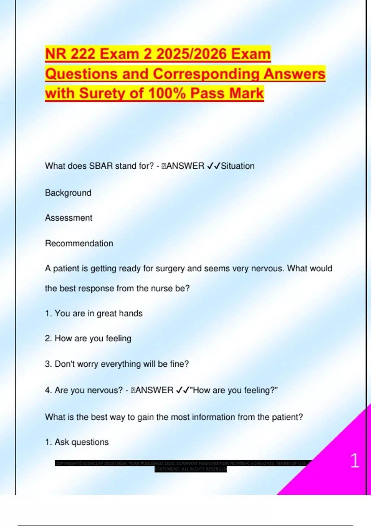 What does SBAR stand for? - 🧠ANSWER ✔✔Situation