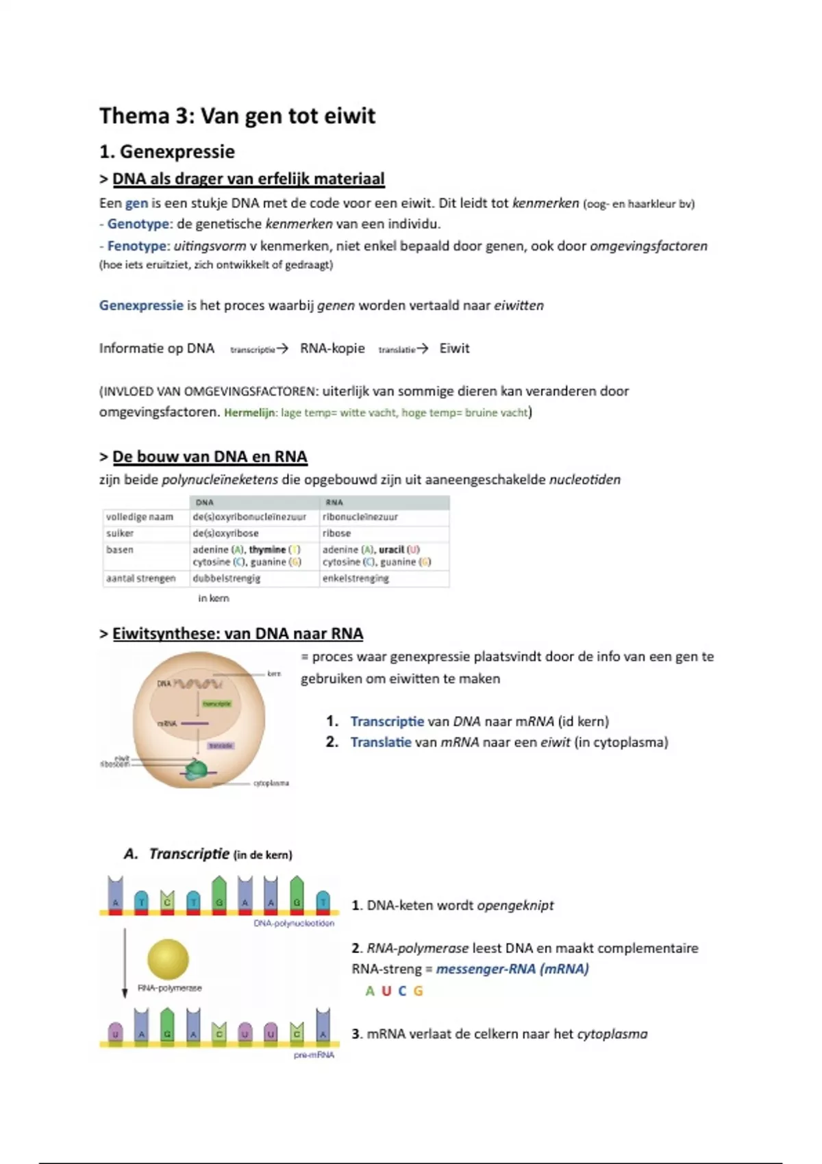 Samenvatting Van gen tot eiwit