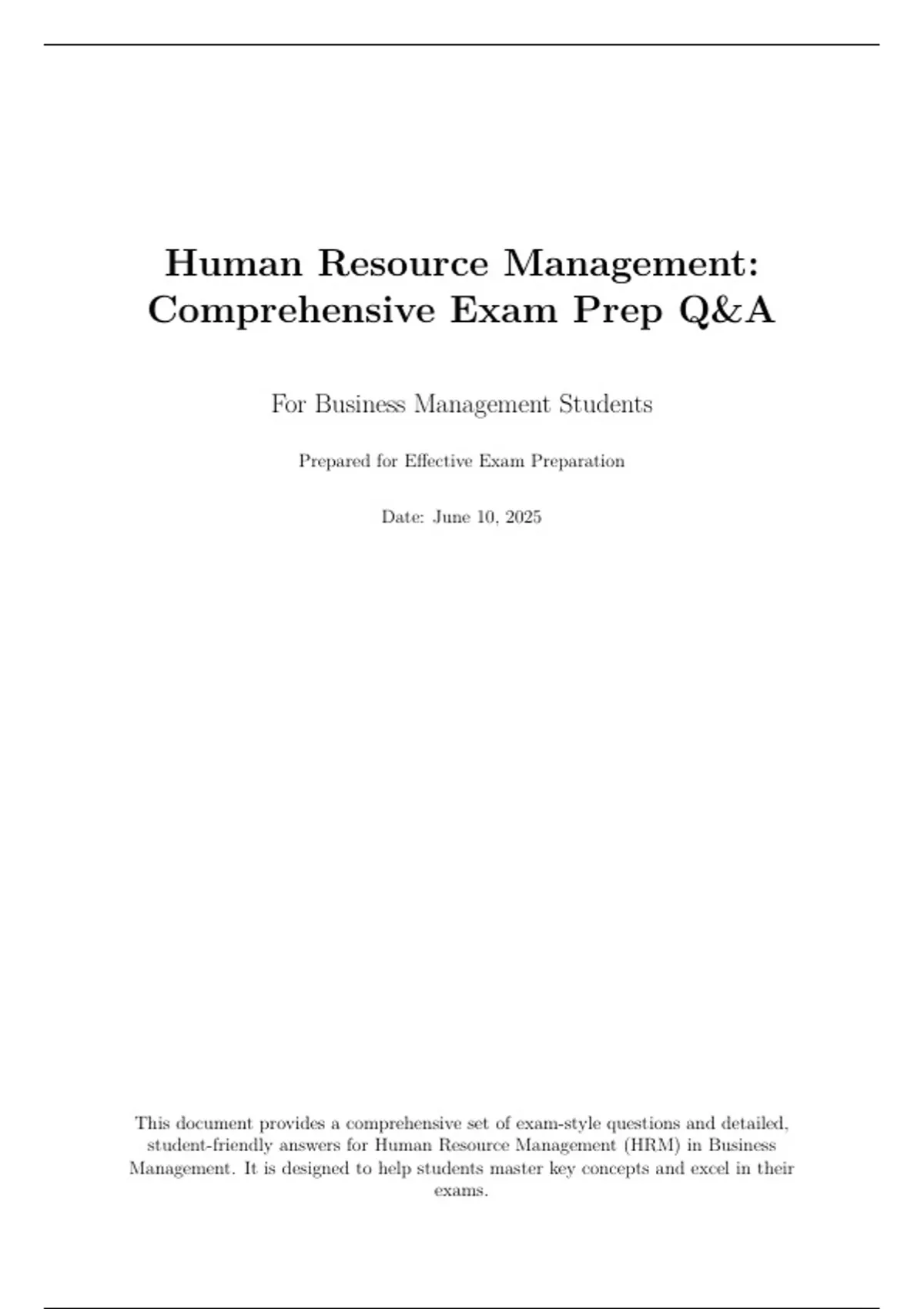 Human Resource Management: Comprehensive Exam Prep Q&A For Business Management Students Prepared for Effective Exam Preparation