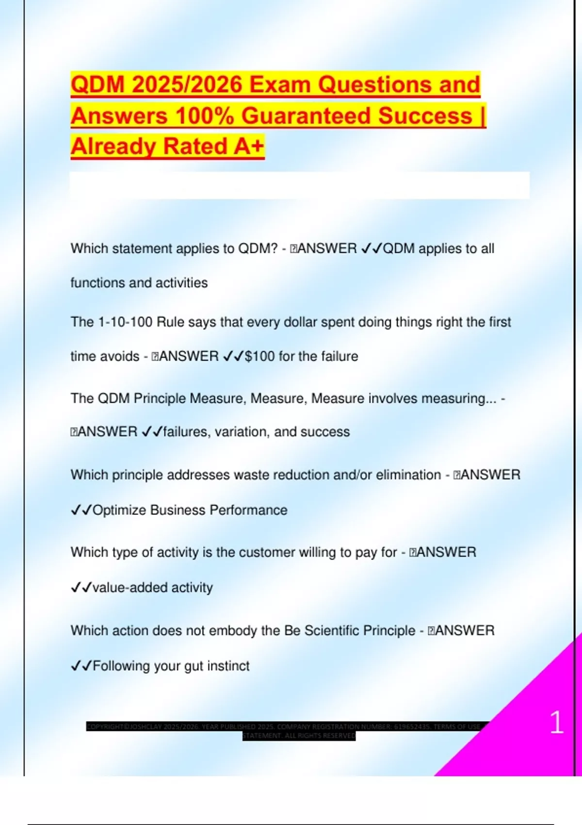 QDM 2025/2026 Exam Questions and Answers 100% Guaranteed Success | Already Rated A+ Which statement applies to QDM? -
