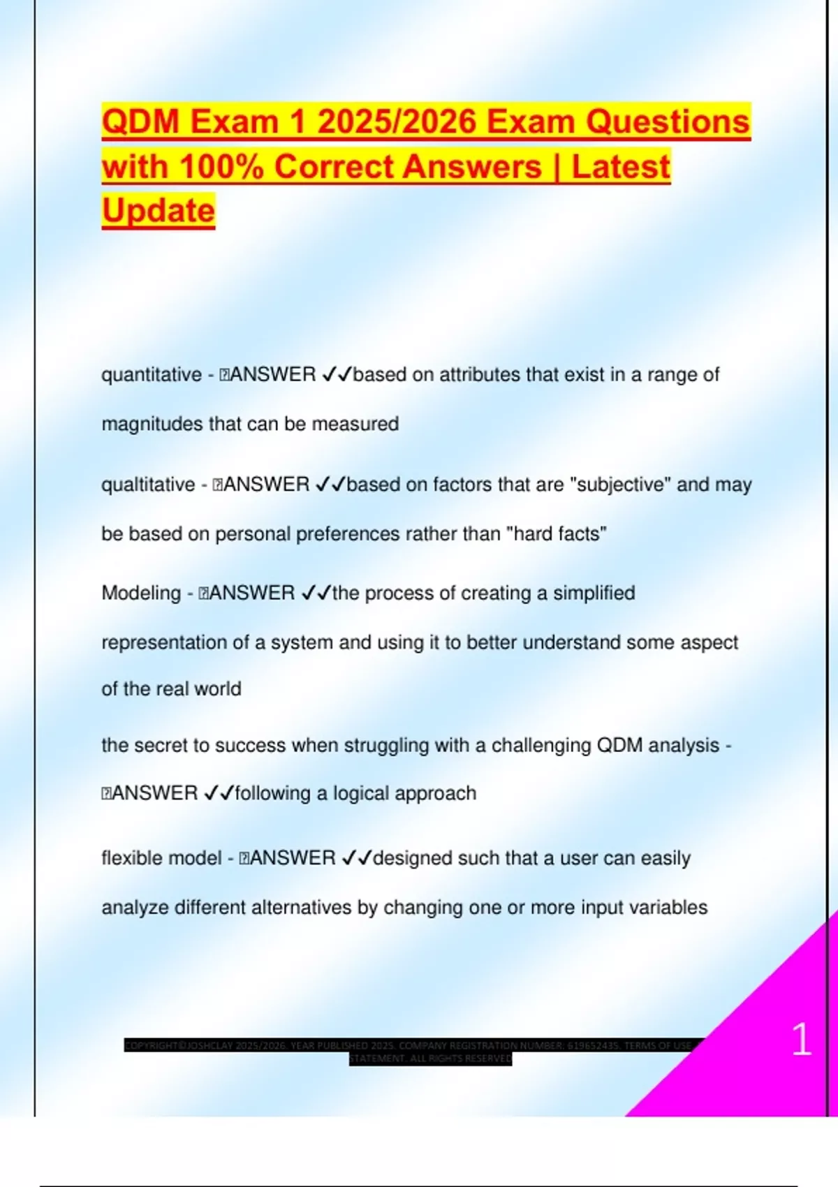QDM Exam 1 2025/2026 Exam Questions with 100% Correct Answers | Latest Update