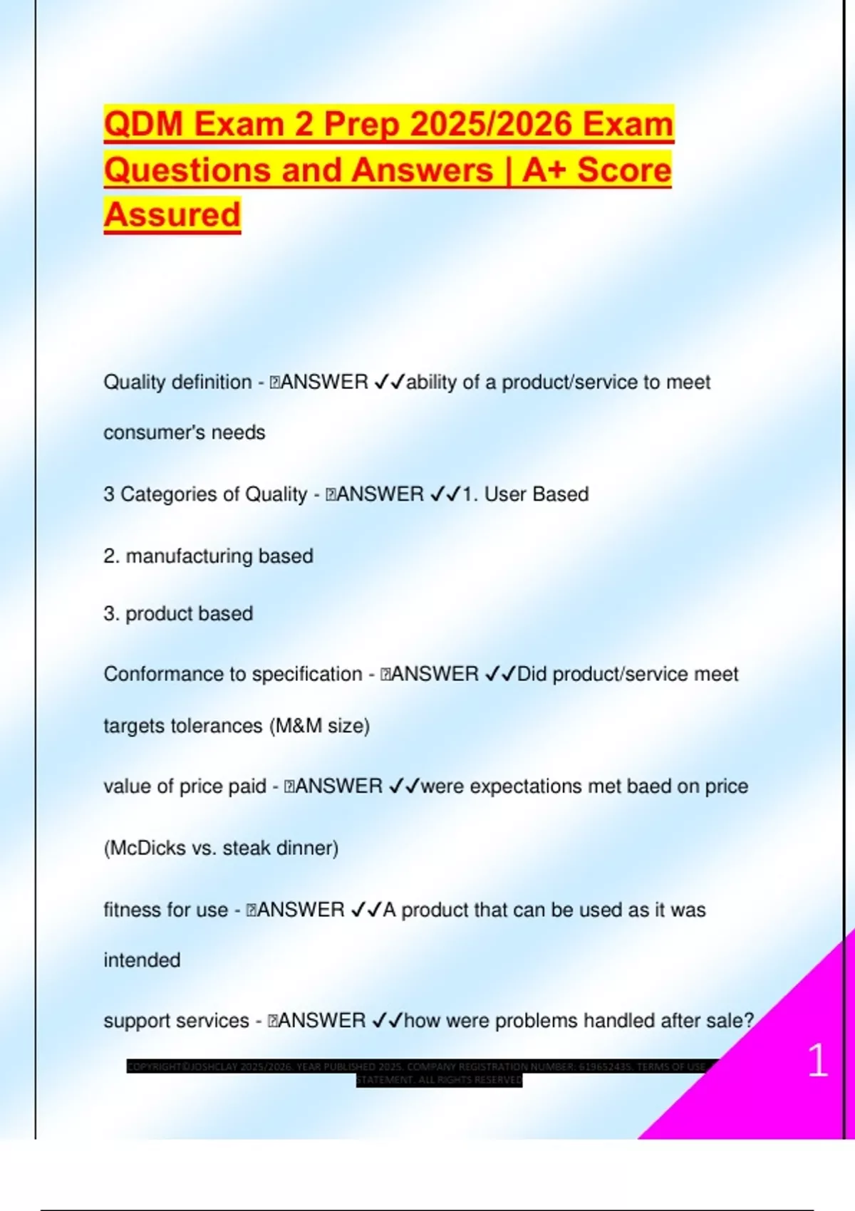 Conformance to specification - 🧠ANSWER ✔✔Did product/service meet