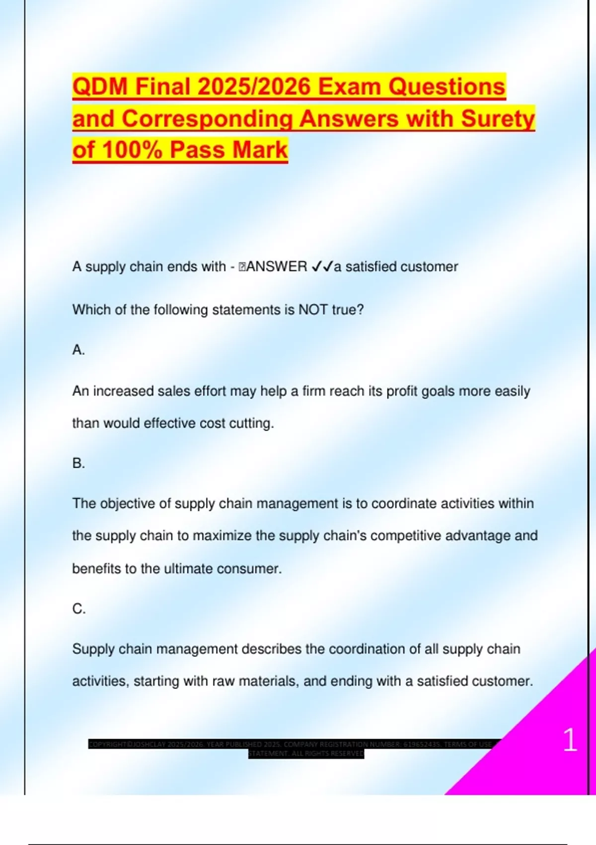 and/or service to the final customer. - 🧠ANSWER ✔✔A.