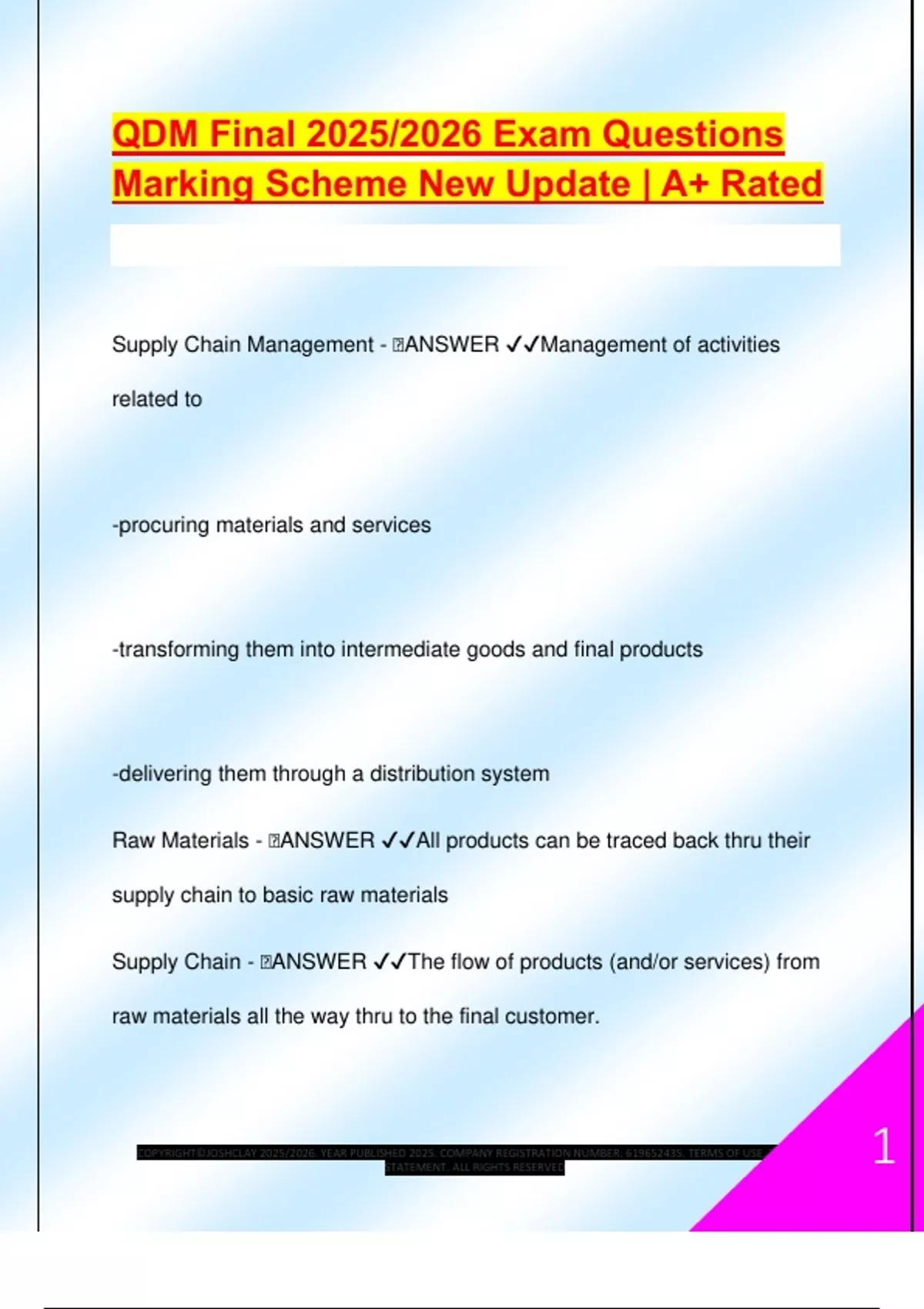 QDM Final 2025/2026 Exam Questions Marking Scheme New Update | A+ Rated Supply Chain Management -