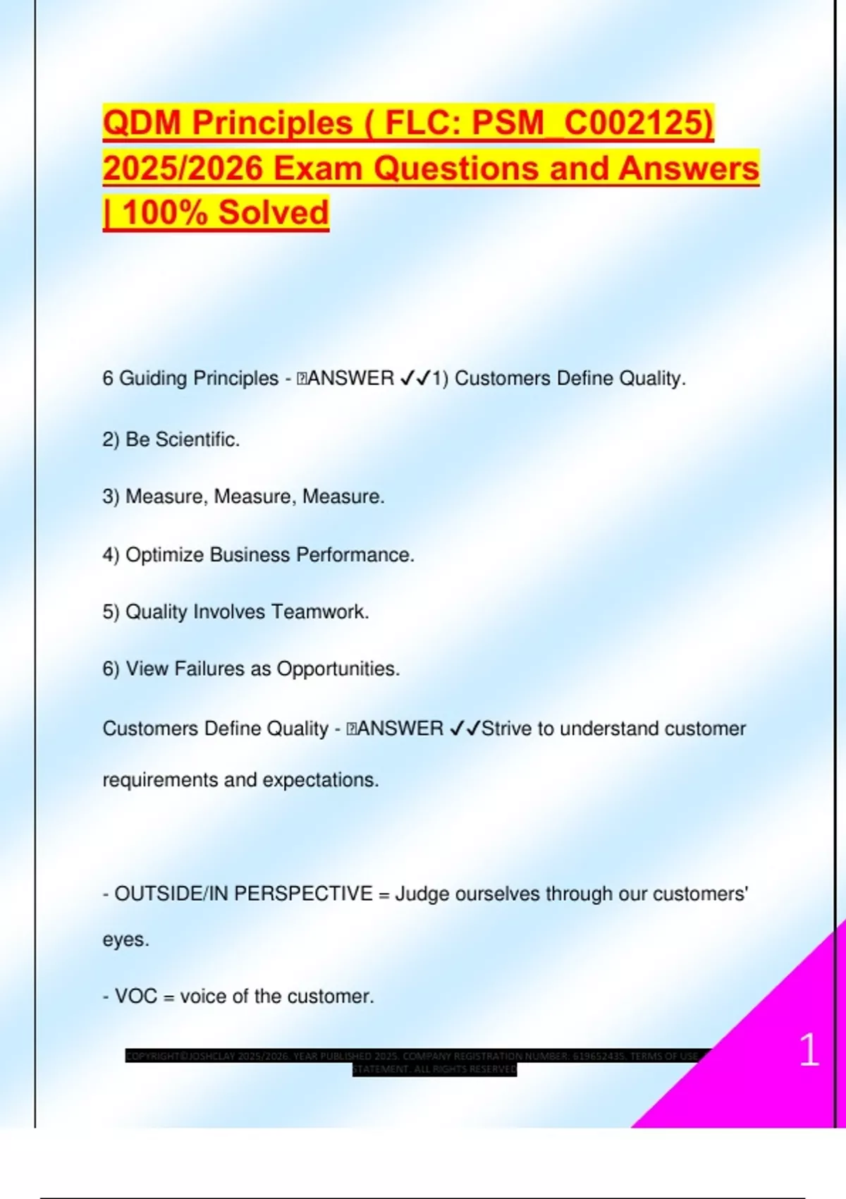 QDM Principles ( FLC: PSM_C002125) 2025/2026 Exam Questions and Answers | 100% Solved
