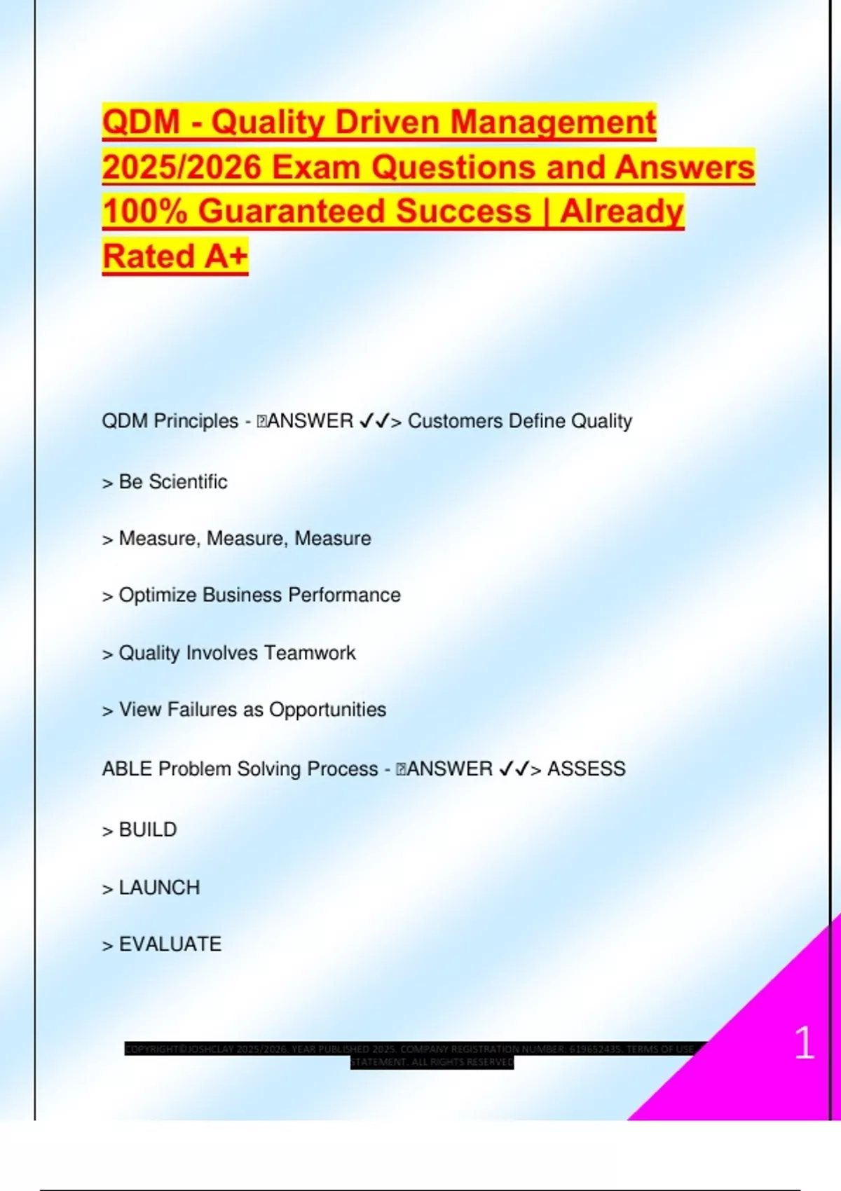 QDM Principles - 🧠ANSWER ✔✔> Customers Define Quality