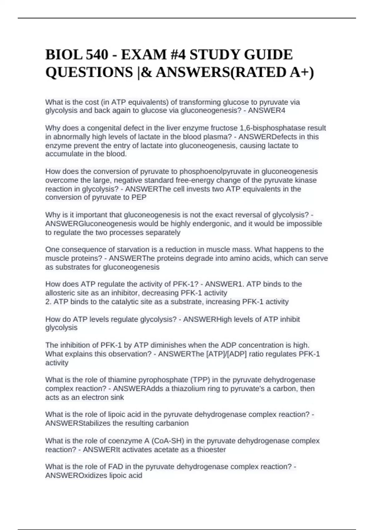 BIOL 540 - EXAM #4 STUDY GUIDE QUESTIONS |& ANSWERS(RATED A+)