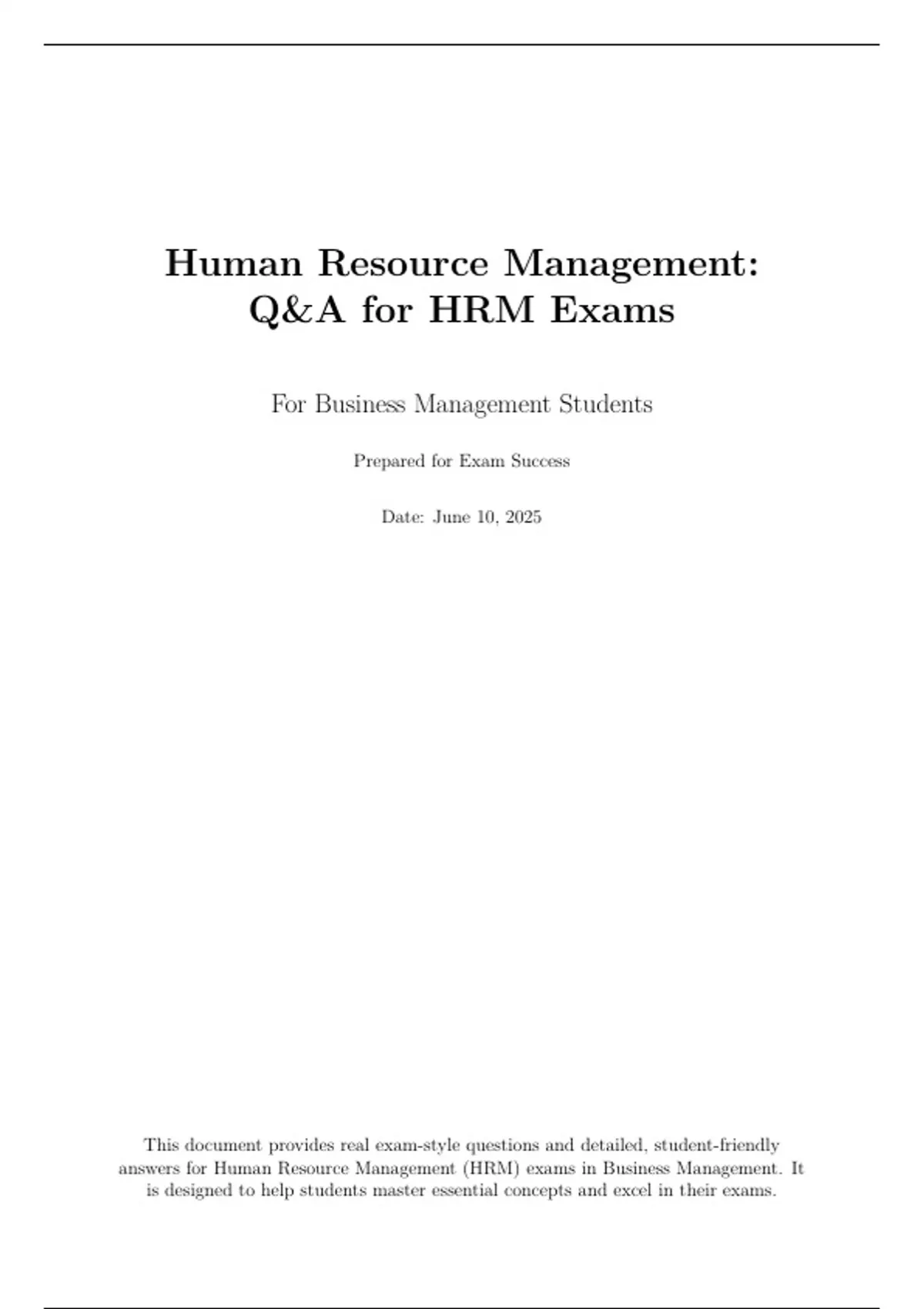 Human Resource Management: Q&A for HRM Exams For Business Management Students Prepared for Exam Success Date: June 10, 2025