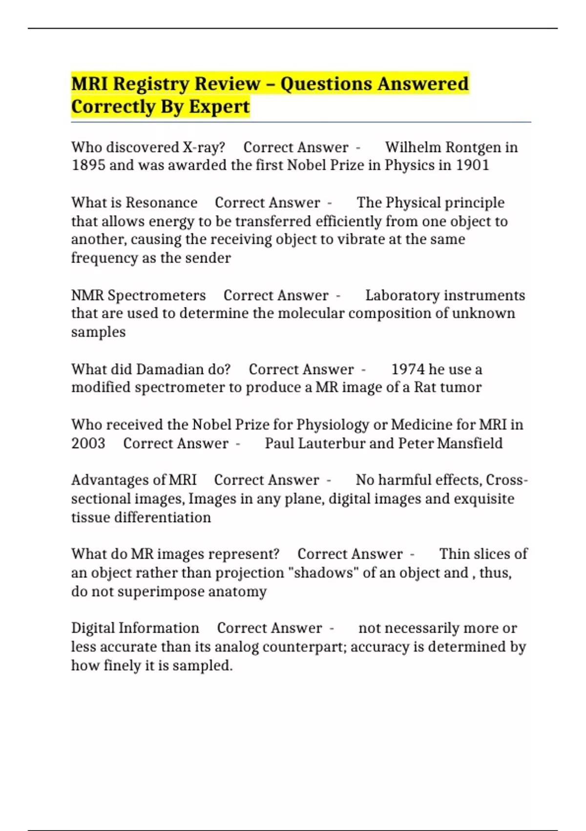 Advantages of MRI Correct Answer - No harmful effects, Cross-