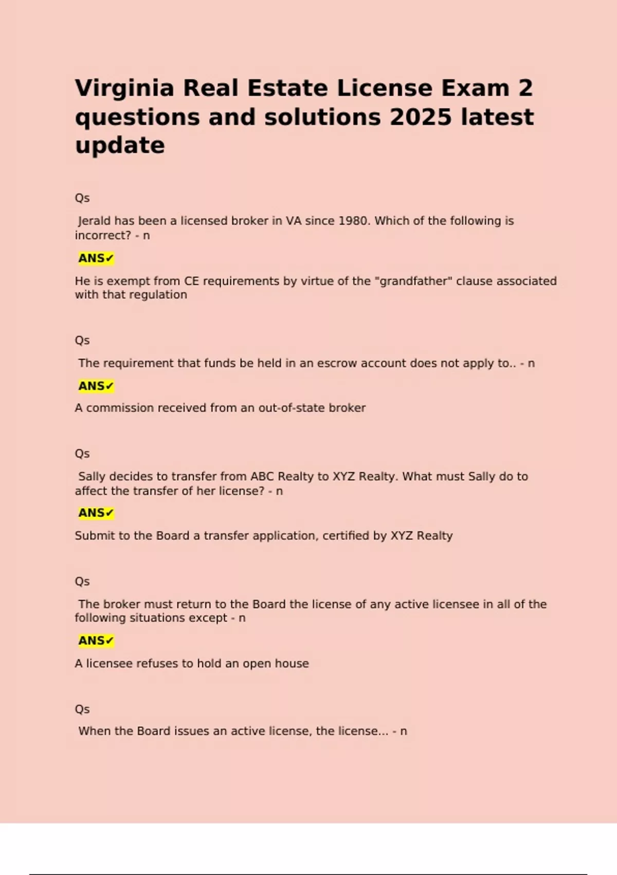 Jerald has been a licensed broker in VA since 1980. Which of the following is