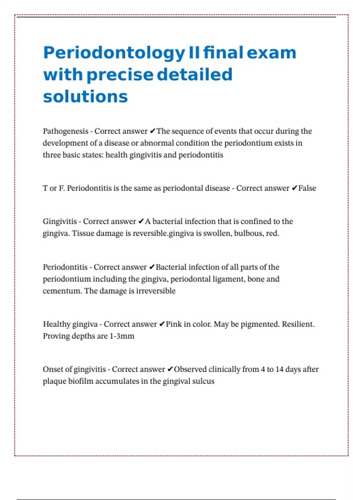 Periodontology II final exam with precise detailed solutions