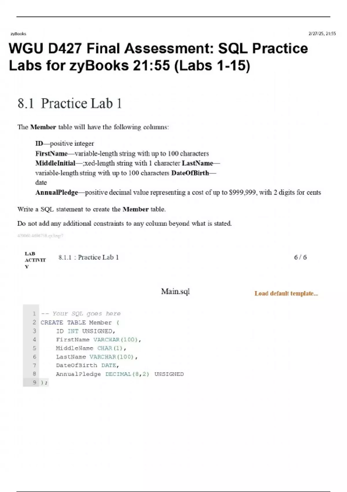 wgu d427 final assessment sql practice labs for z