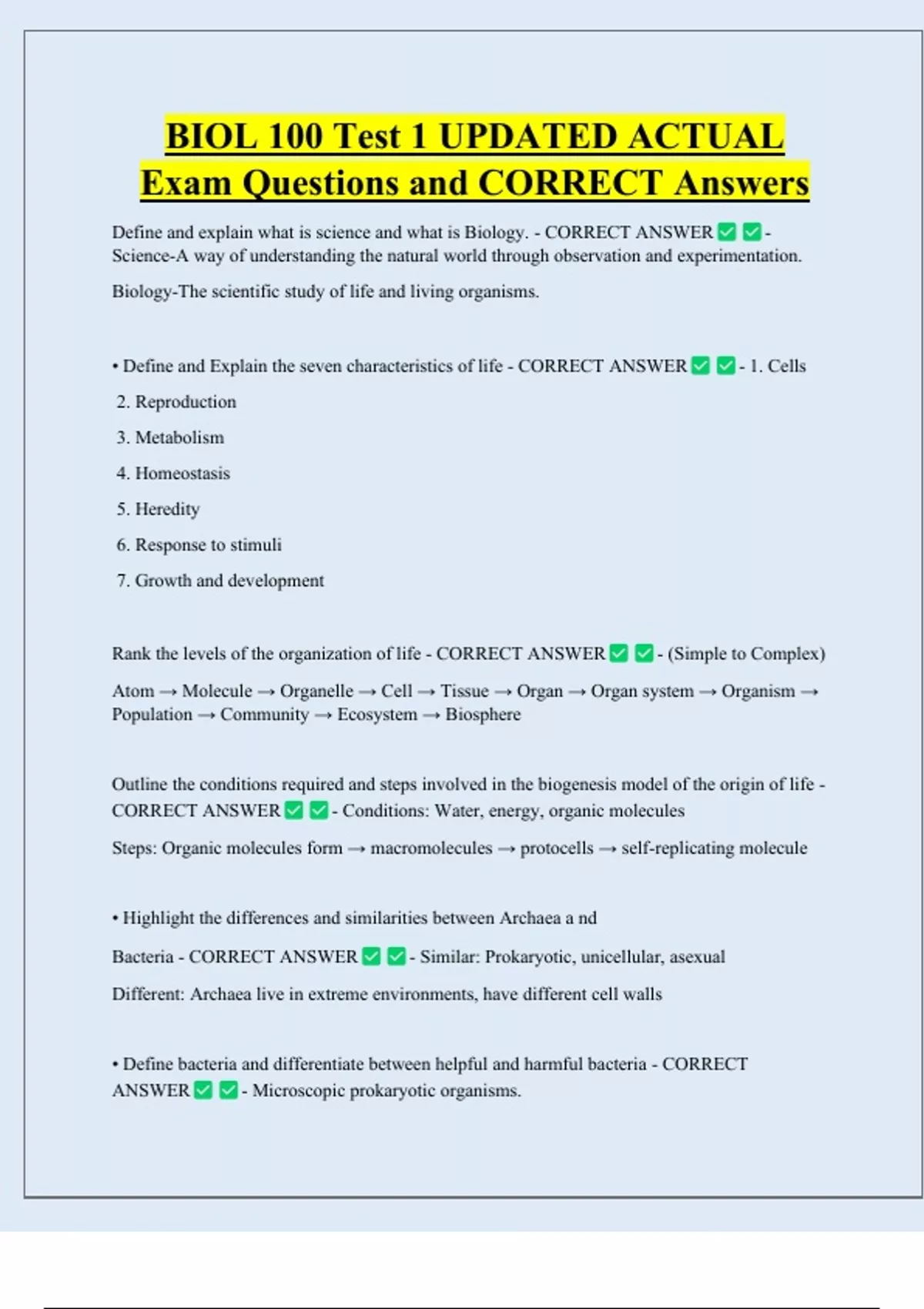 • Define and Explain the seven characteristics of life - CORRECT ANSWER - 1. Cells