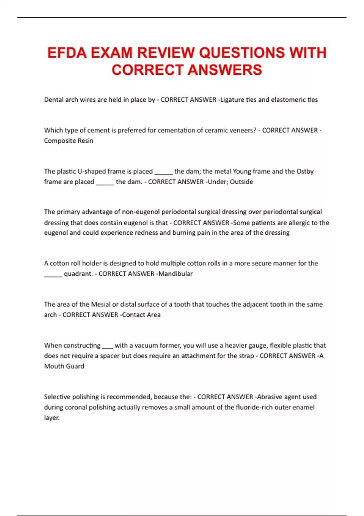 EFDA EXAM REVIEW QUESTIONS WITH