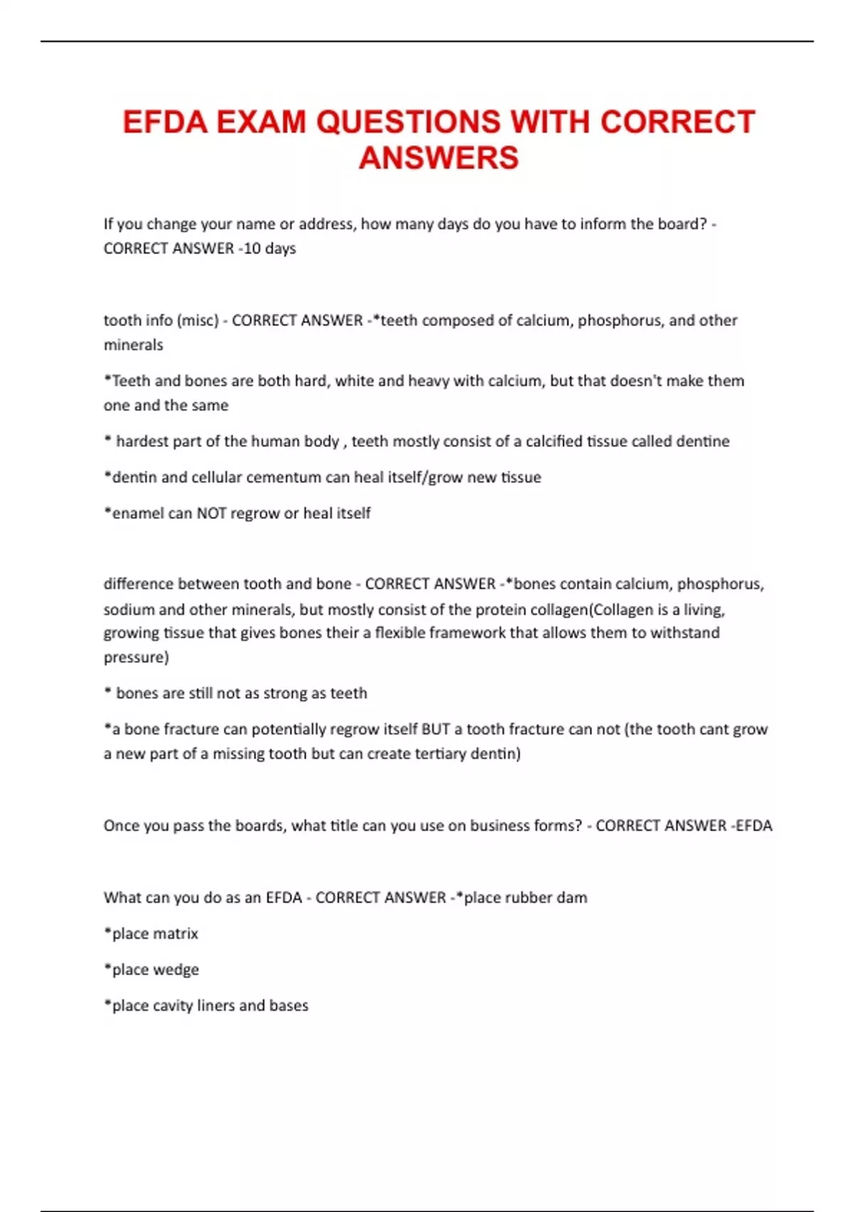 EFDA EXAM QUESTIONS WITH CORRECT