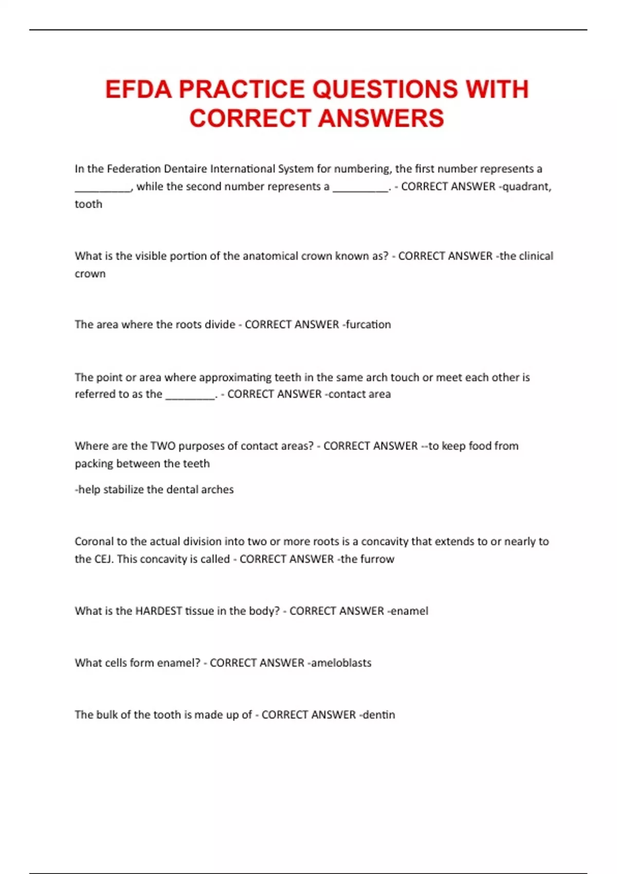 EFDA PRACTICE QUESTIONS WITH