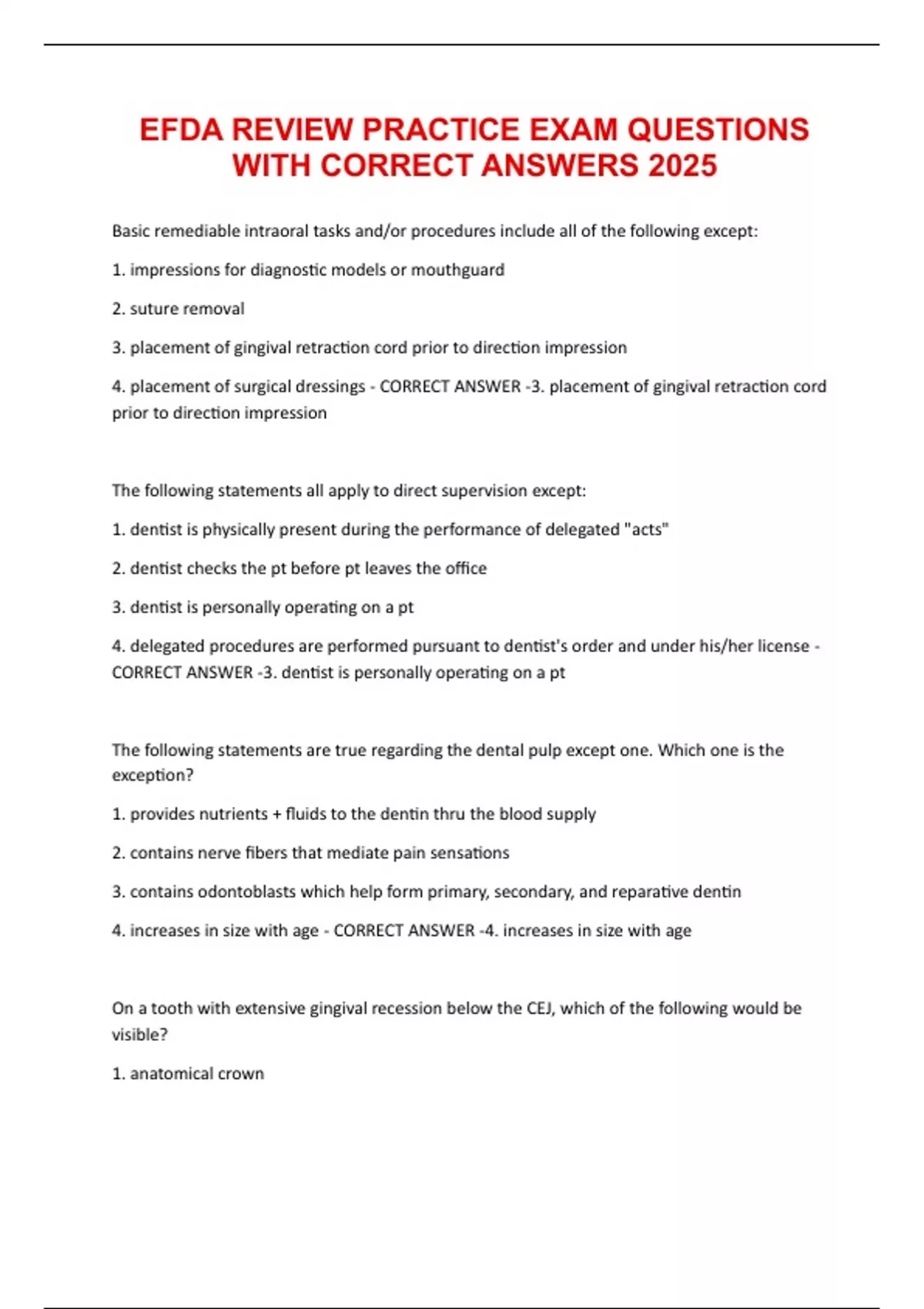 EFDA REVIEW PRACTICE EXAM QUESTIONS WITH CORRECT ANSWERS 2025