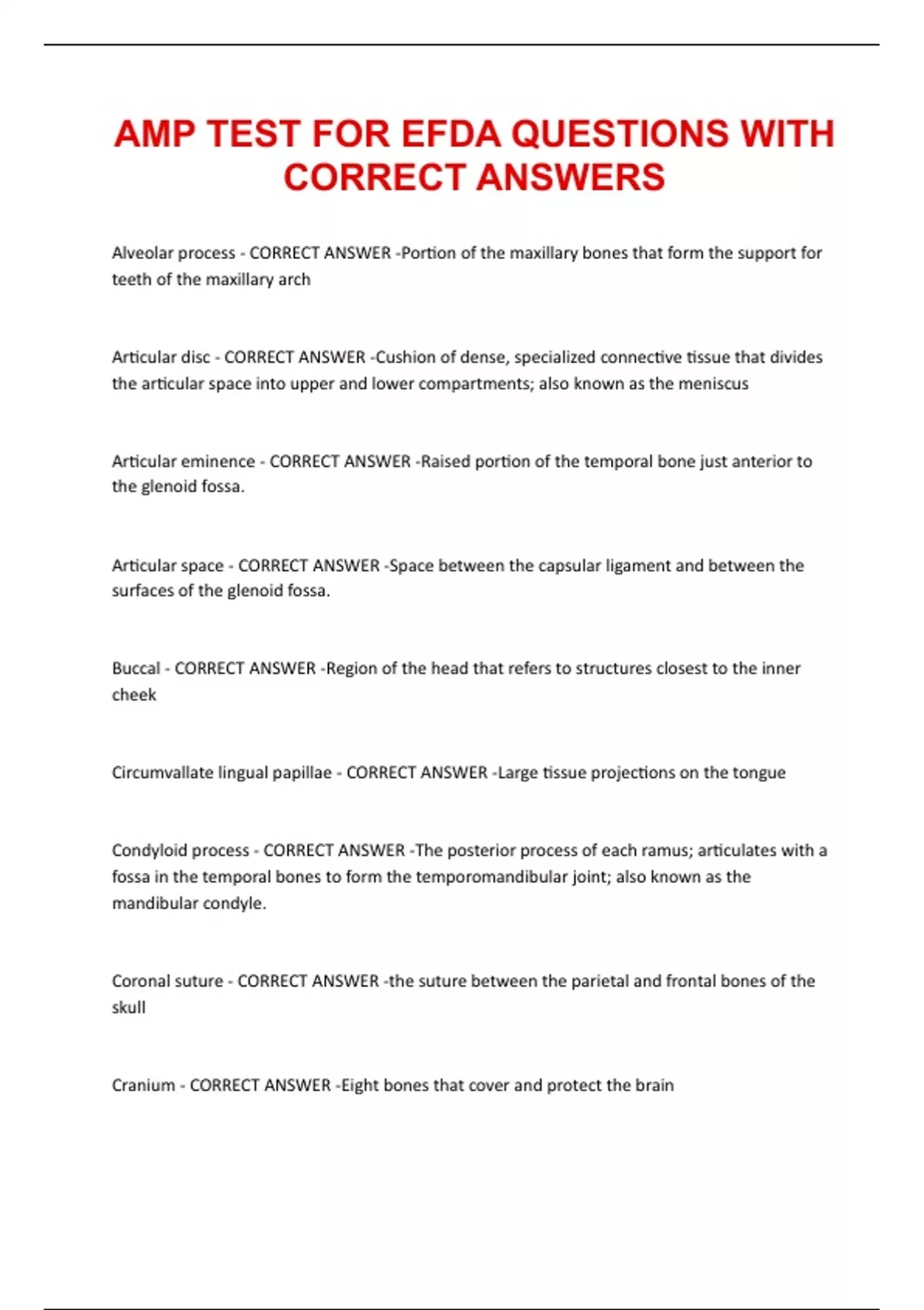 Articular eminence - CORRECT ANSWER -Raised portion of the temporal bone just anterior to