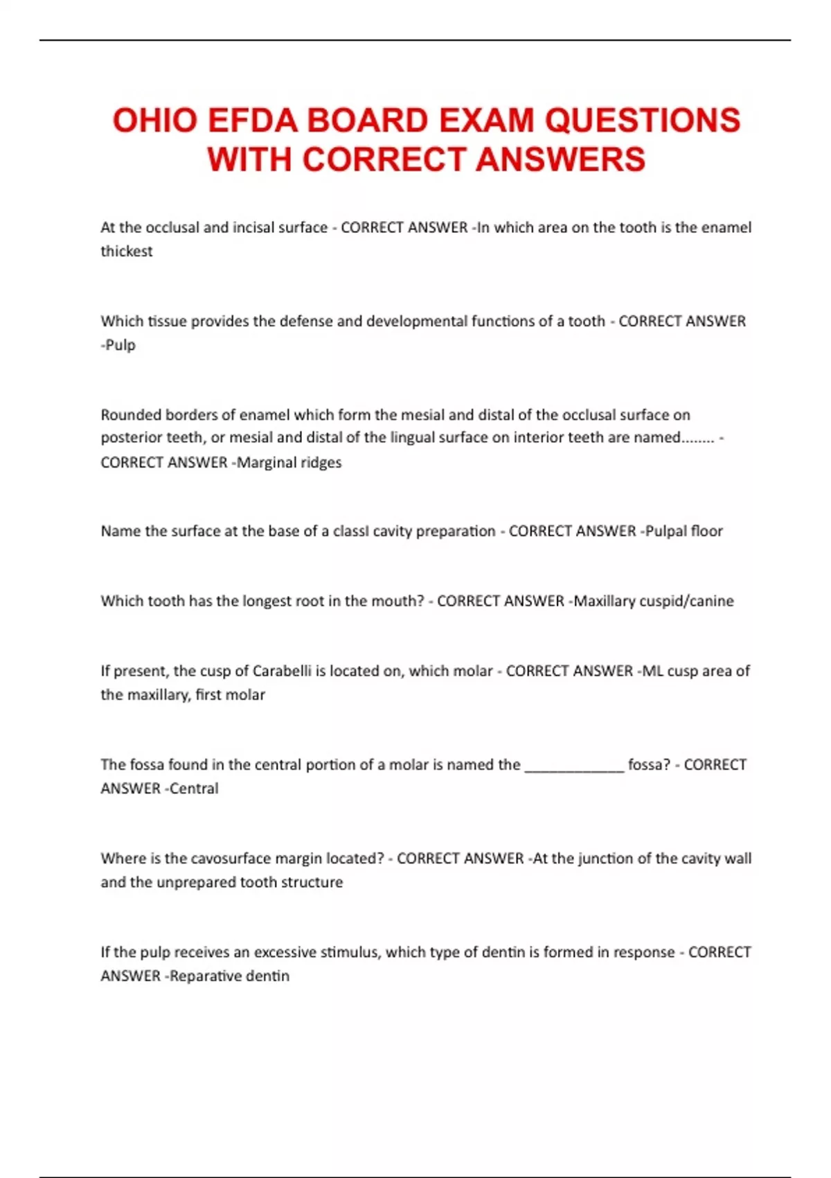 OHIO EFDA BOARD EXAM QUESTIONS WITH CORRECT ANSWERS 2025