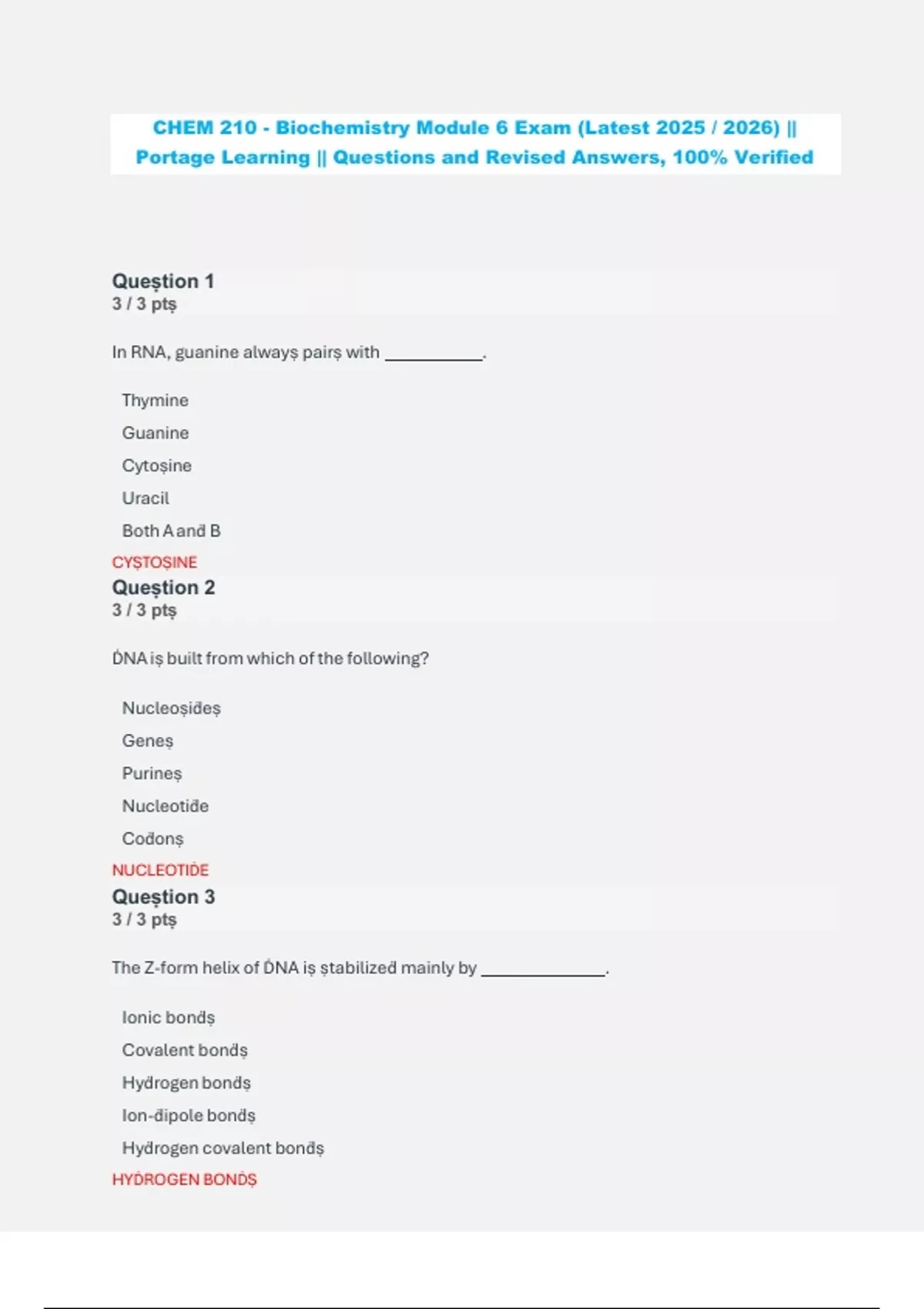 Portage Learning || Questions and Revised Answers, 100% Verified