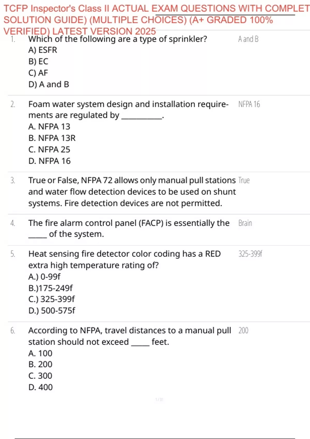 TCFP Inspector's Class II ACTUAL EXAM QUESTIONS WITH COMPLET