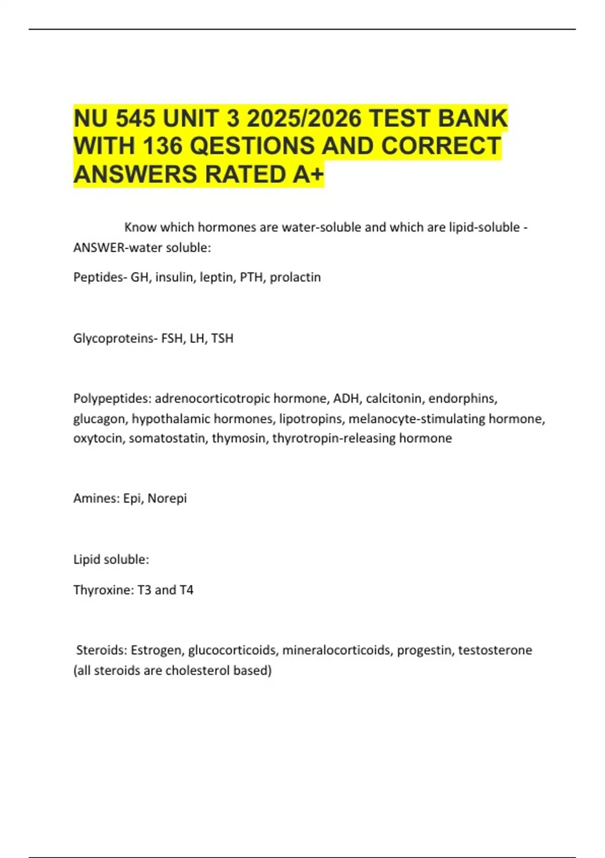NU 545 UNIT 3 2025/2026 TEST BANK