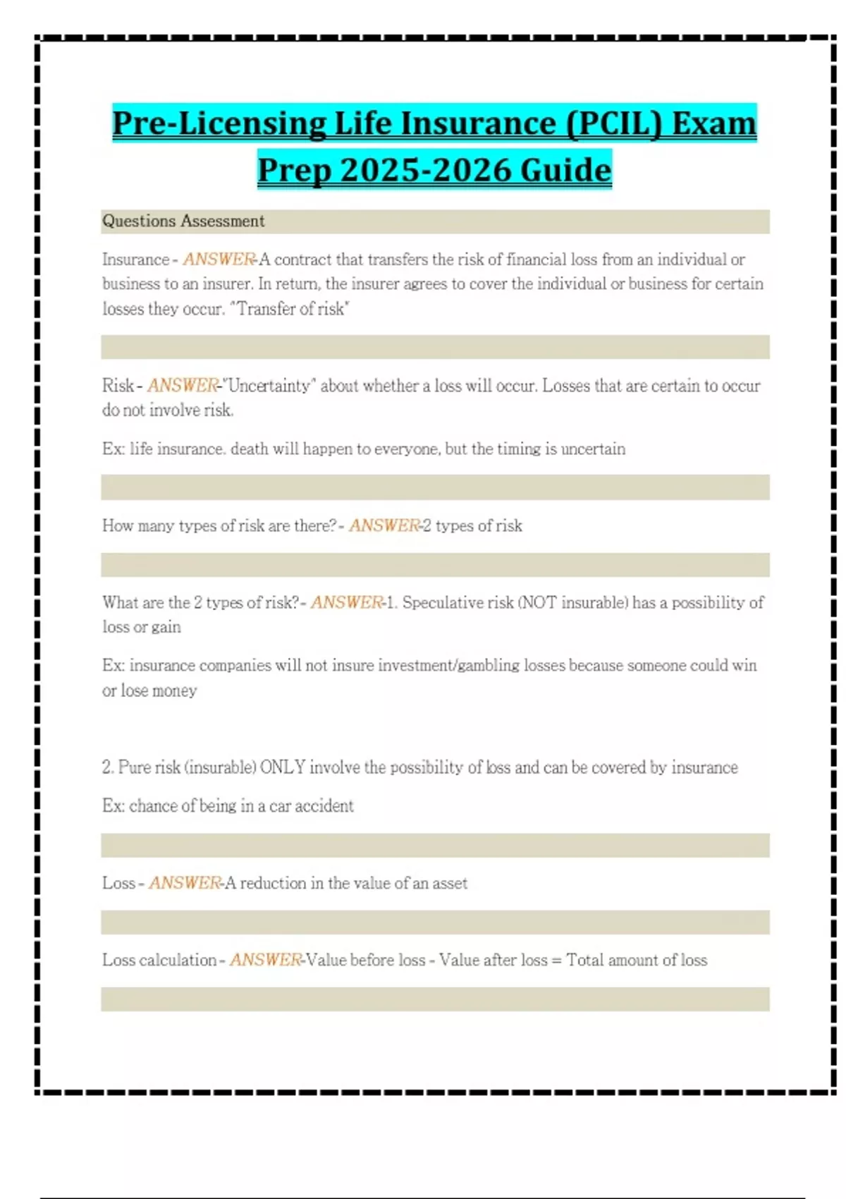Pre-Licensing Life Insurance (PCIL) Exam Prep Guide