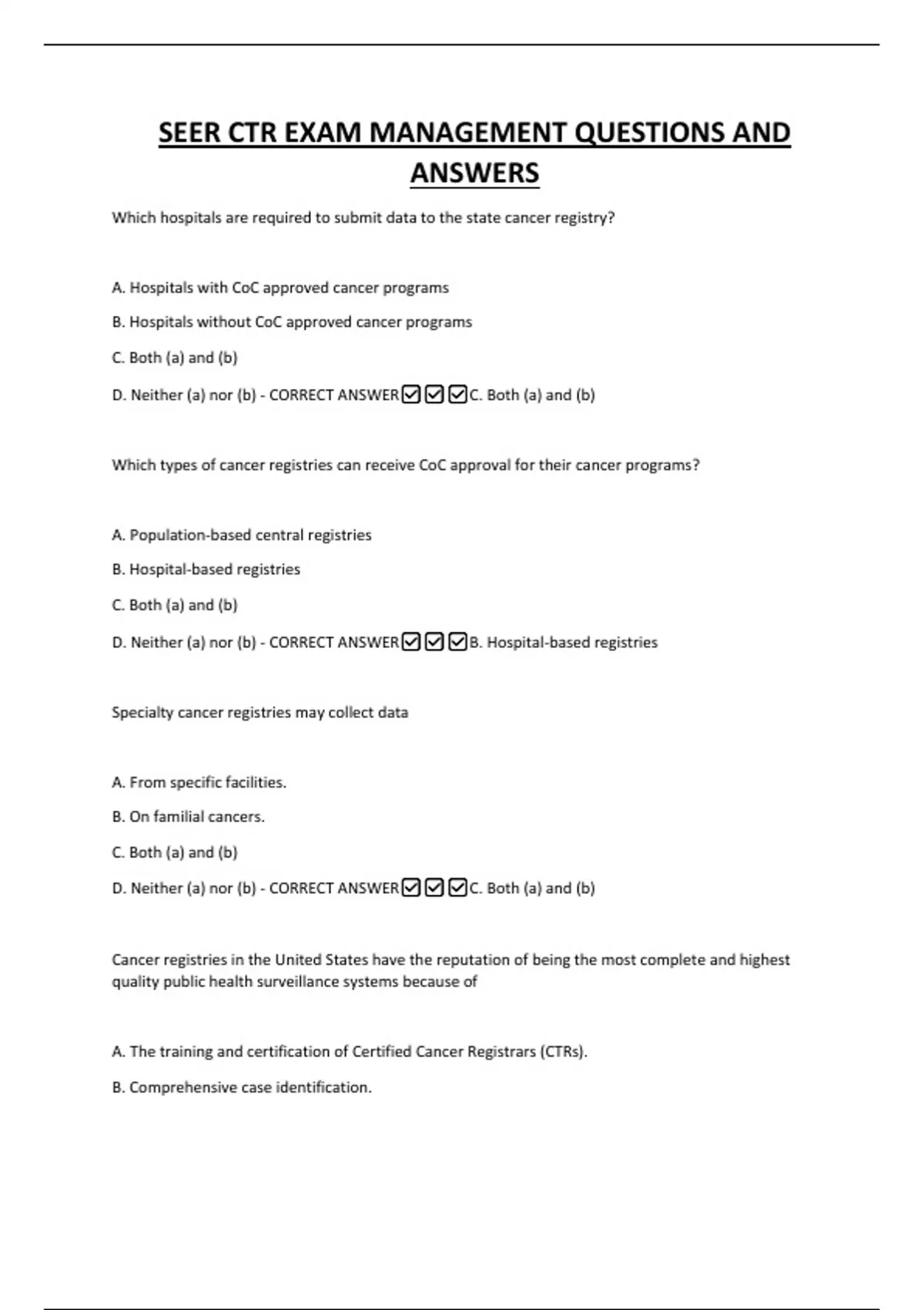 D. Neither (a) nor (b) - CORRECT ANSWER✅✅✅B. Hospital-based registries