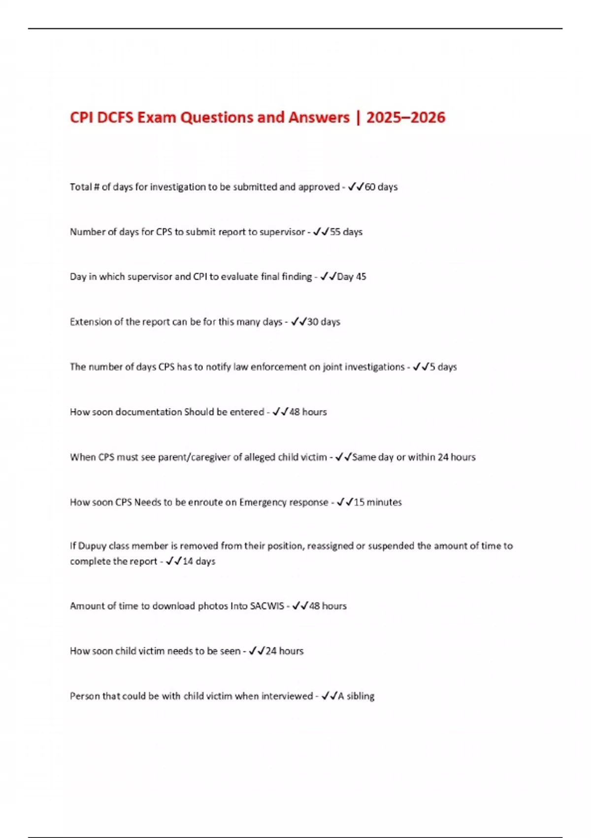 cpi dcfs exam questions and answers