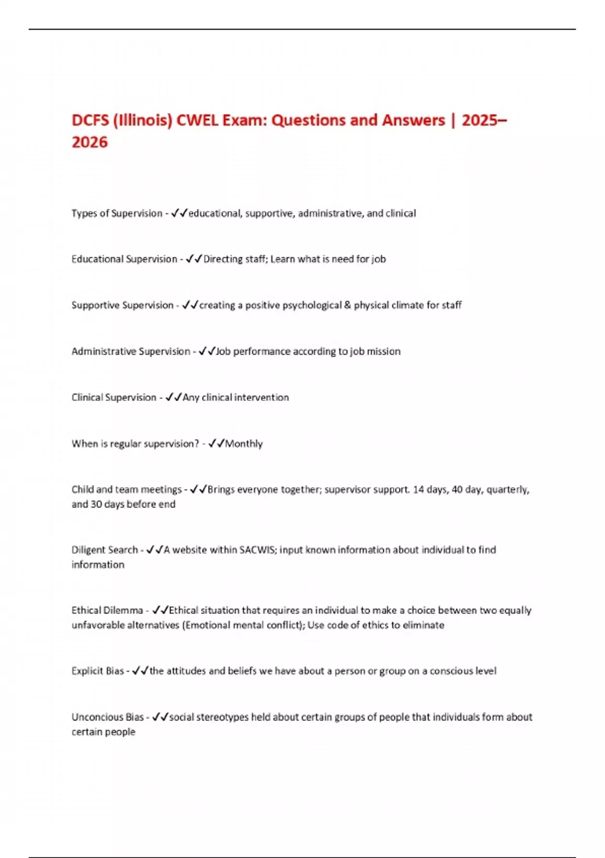 DCFS (Illinois) CWEL Exam: Questions and Answers | 2025– 2026