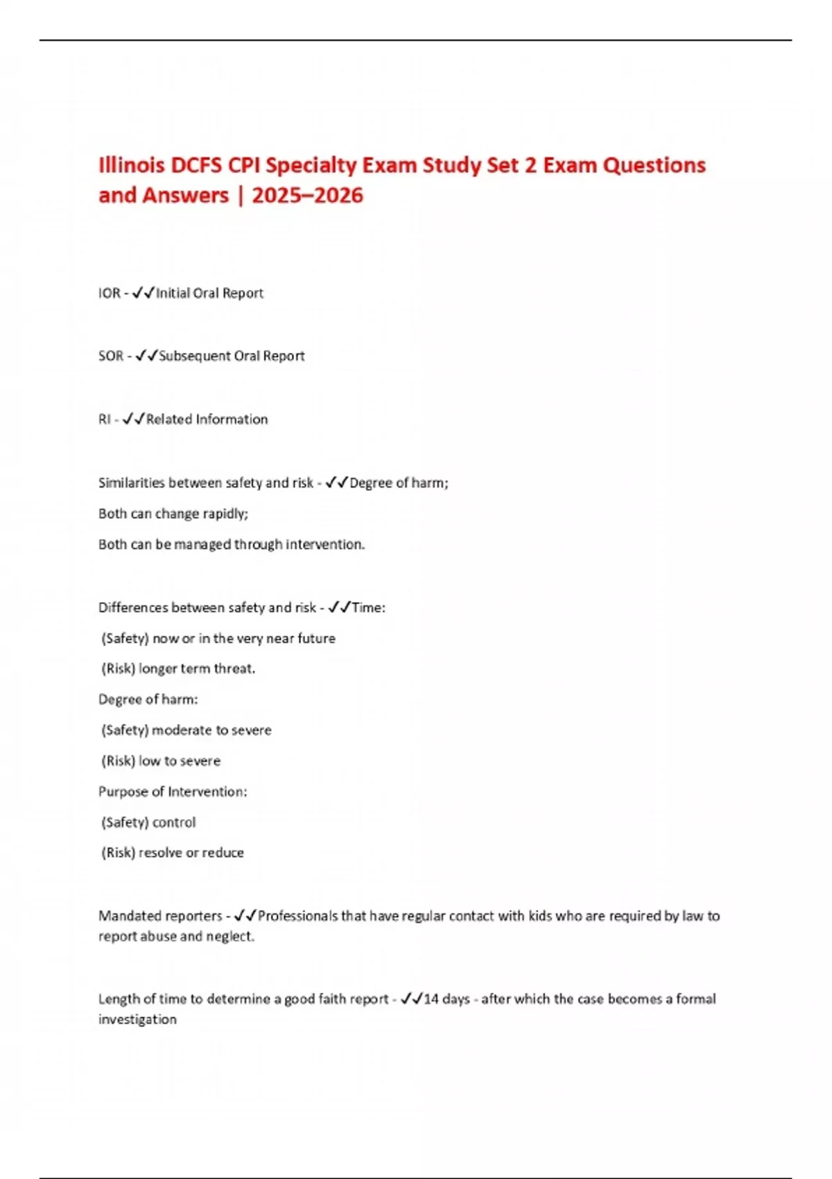 Illinois DCFS CPI Specialty Exam Study Set 2 Exam Questions and Answers | 2025–2026