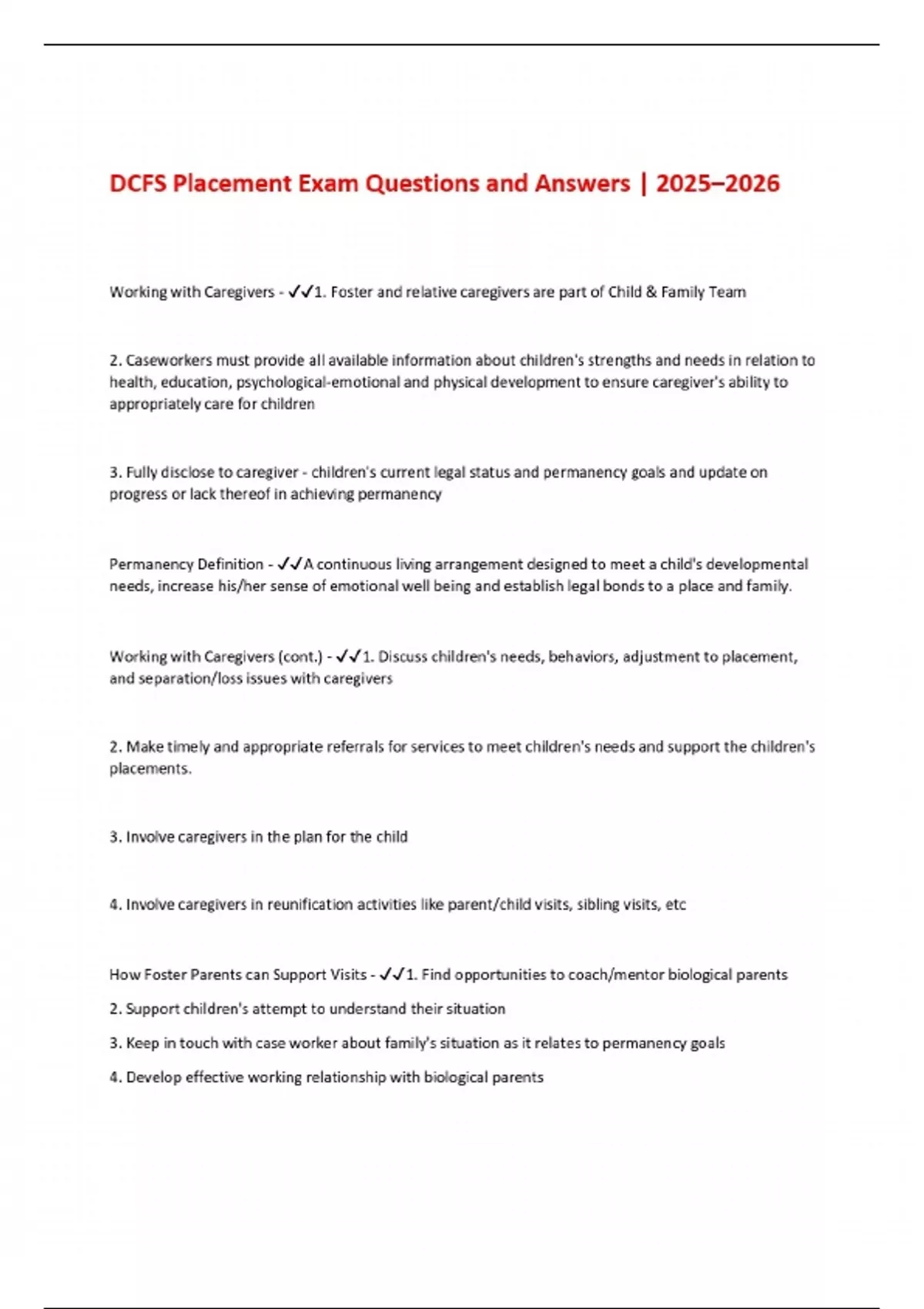 dcfs placement exam questions and answers 20252