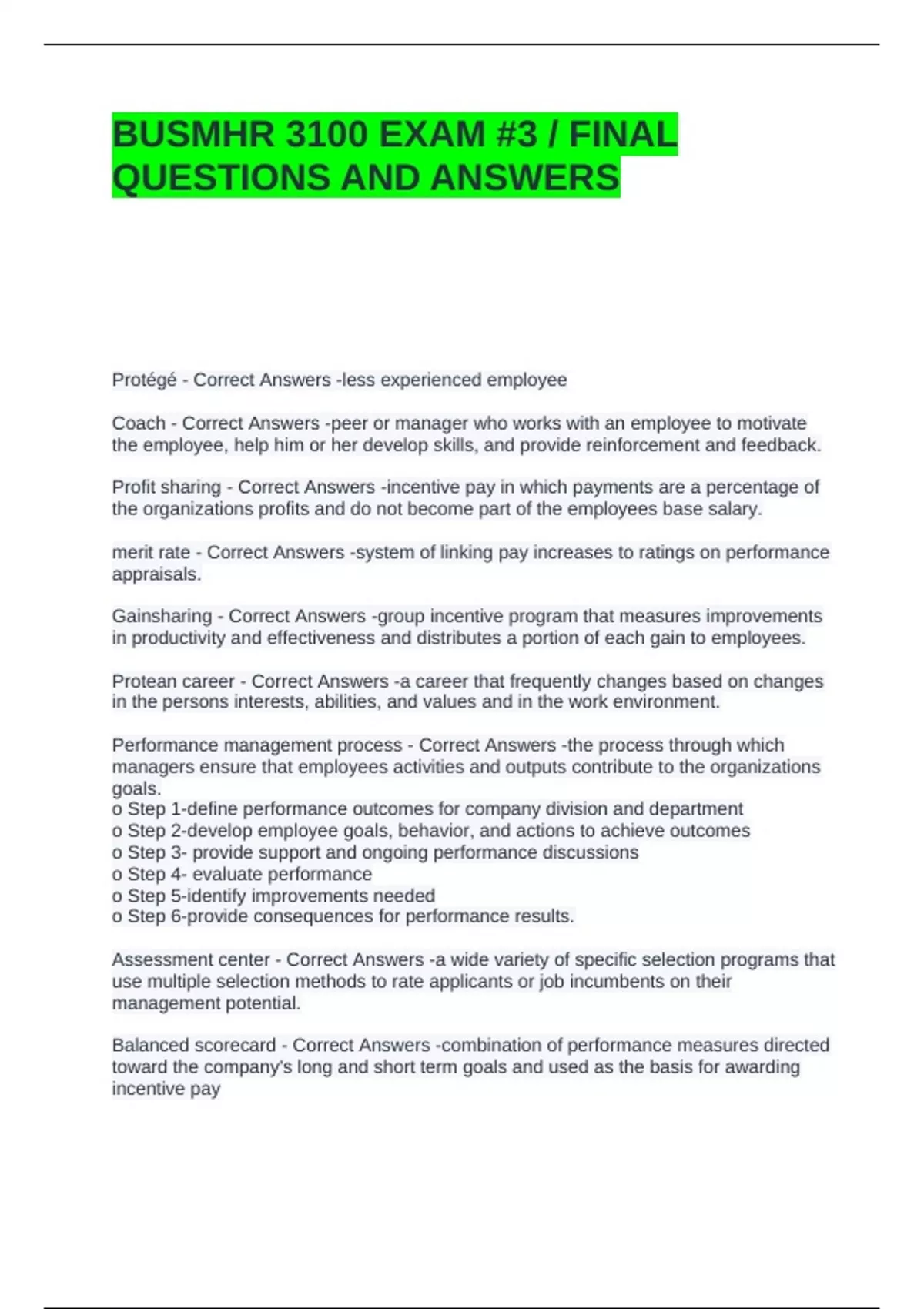 BUSMHR 3100 EXAM #3 / FINAL